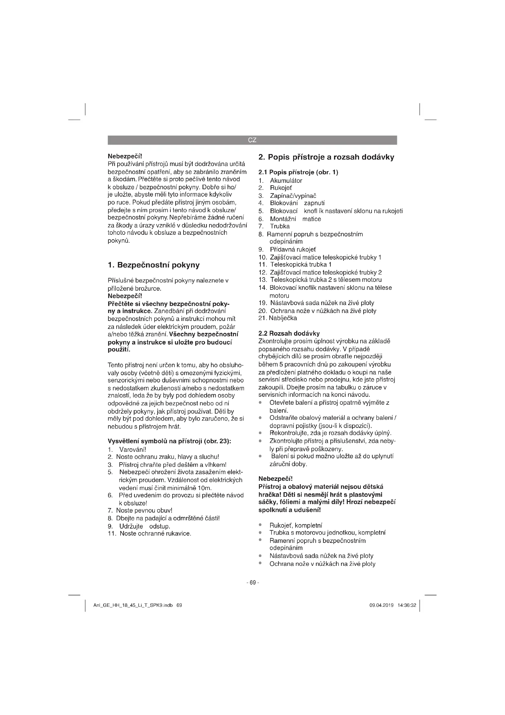 GEHH 1845 Li T Kit - Nůžky na živé ploty EINHELL - Bezplatný návod k obsluze