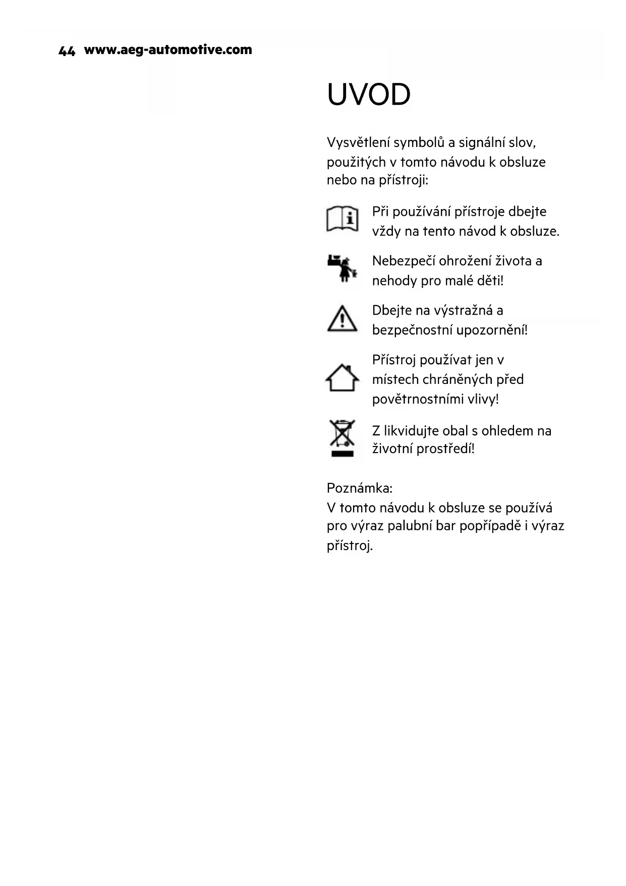 Nezkoušejte přístroj demontovat nebo opravo- vat. Vadný přístroj nechte ihned vyměnit nebo ho opravit v odborné dílně.www.aeg-automotive.com