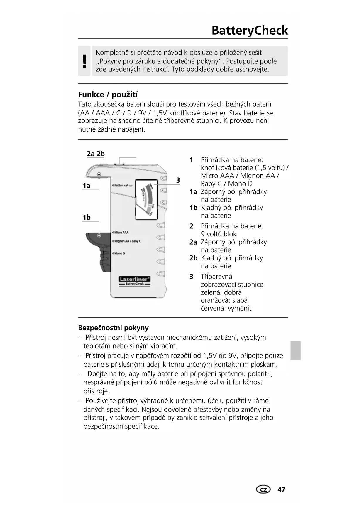 NÁVOD K OBSLUZE BatteryCheck Laserliner