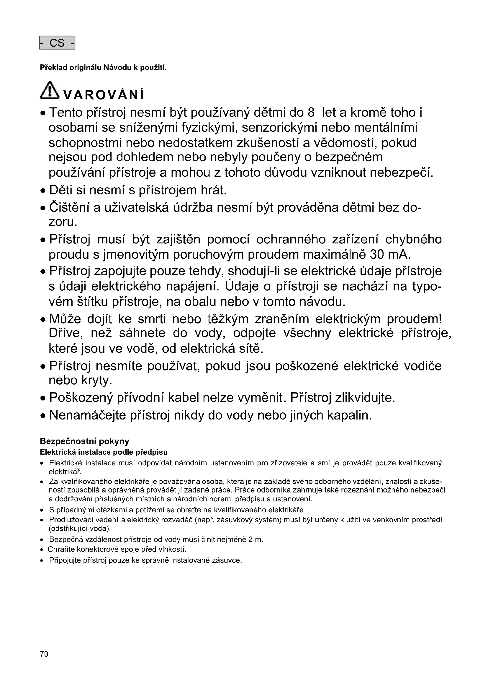 - CS - Překlad originálu Návodu k použití. VAROVÁNÍ
