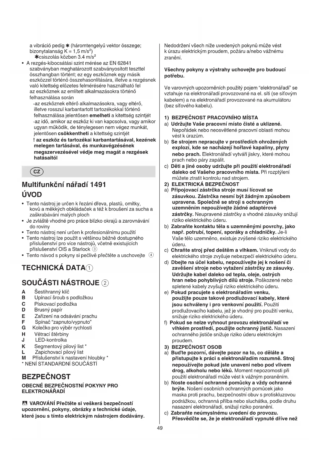 ELEKTRONÁŘADÍ - VAROVÁNÍ Přečtěte si veškerá bezpečností upozornění, pokyny, obrázky a technické údaje, které jsou s tímto elektrickým nástrojem dodávány.50 BEZPEČNOSTNÍ POKYNY PRO MULTIFUNKČNÍ NÁŘADÍ OBECNĚ