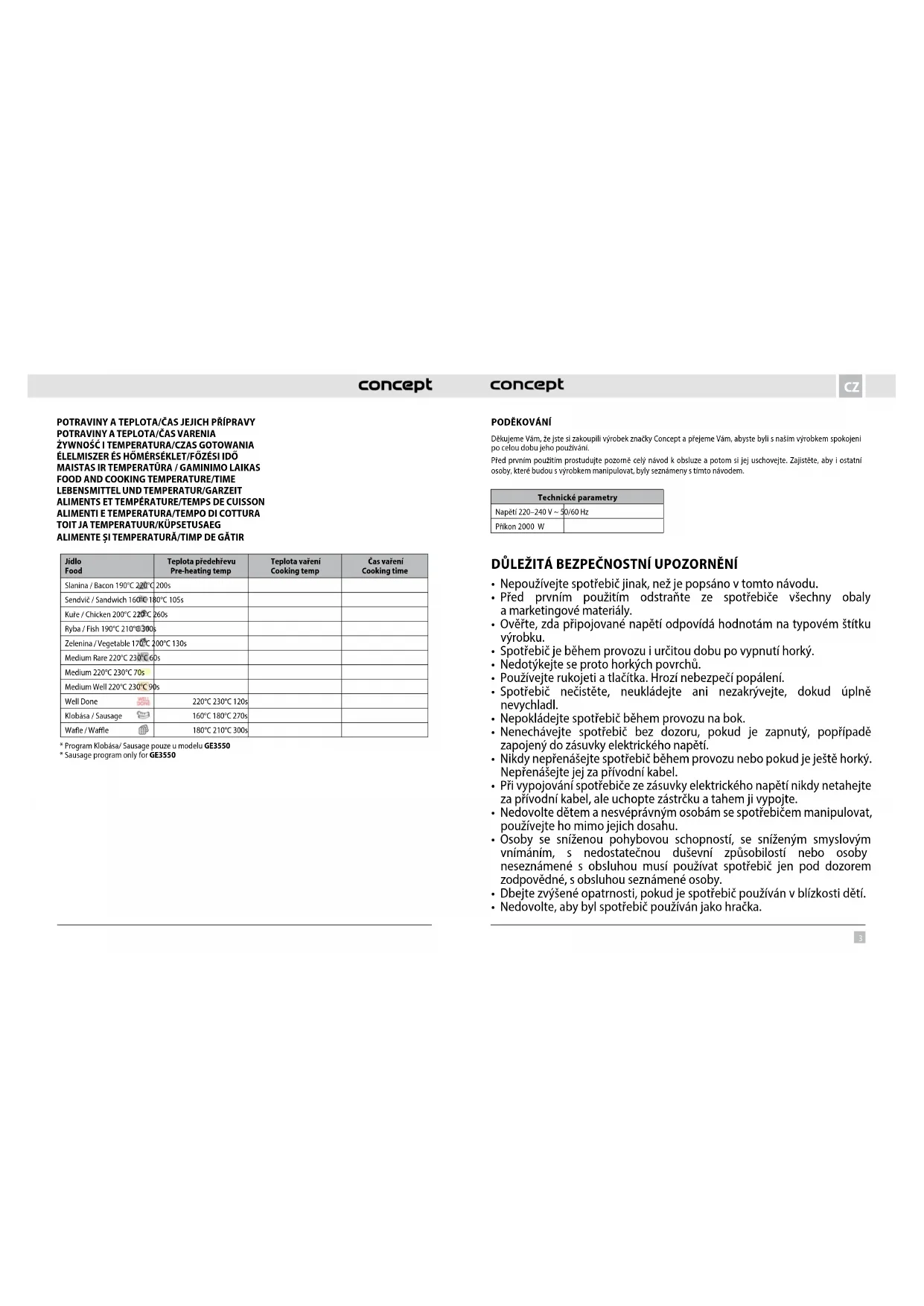 NÁVOD K OBSLUZE GE3550 Concept