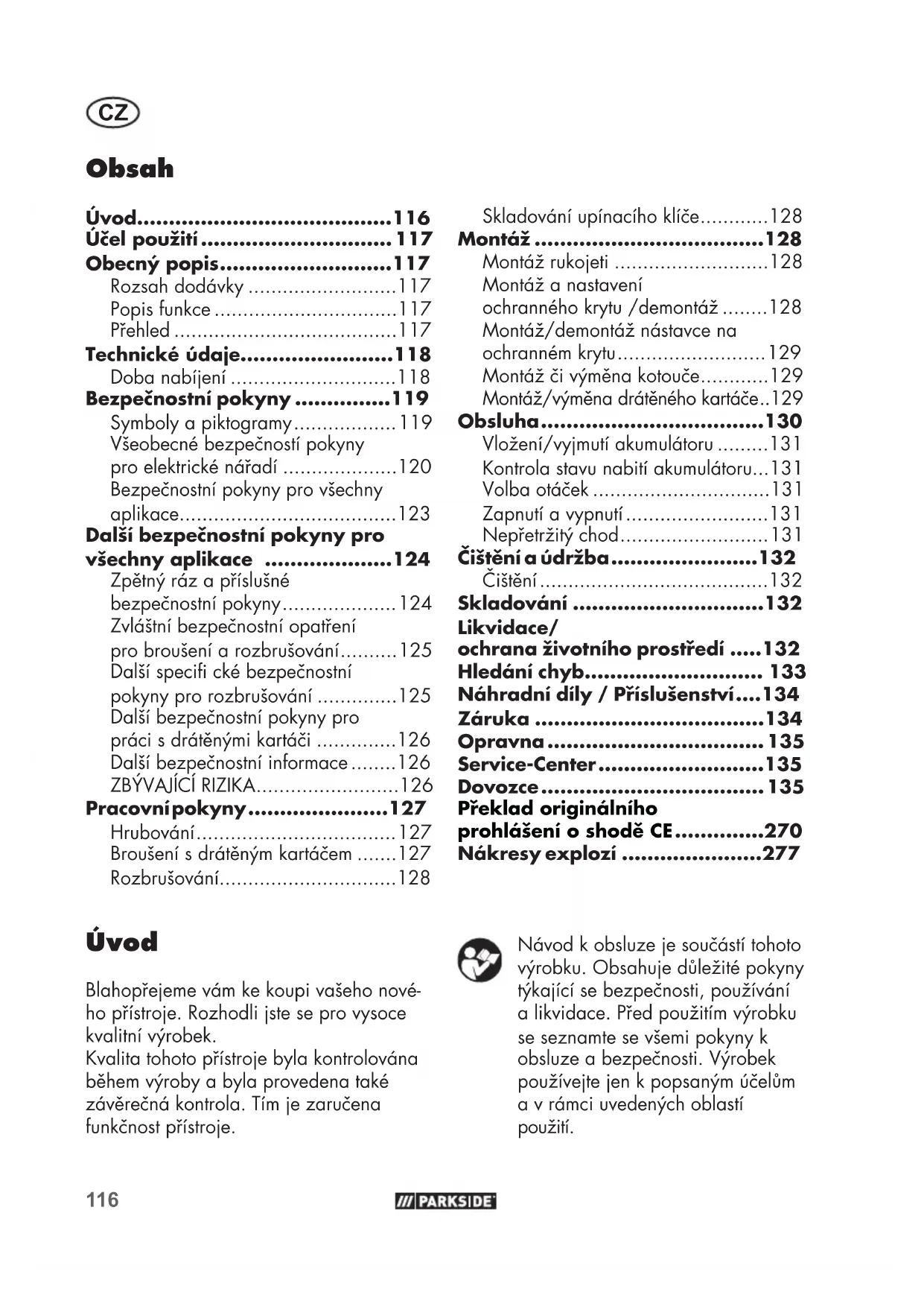 Nákresy explozí ......................277 Návodkobsluzejesoučástítohoto výrobku.Obsahujedůležitépokyny týkajícísebezpečnosti,používání alikvidace.Předpoužitímvýrobku se seznamte se všemi pokyny k obsluzeabezpečnosti.Výrobek používejtejenkpopsanýmúčelům avrámciuvedenýchoblastí použití.117