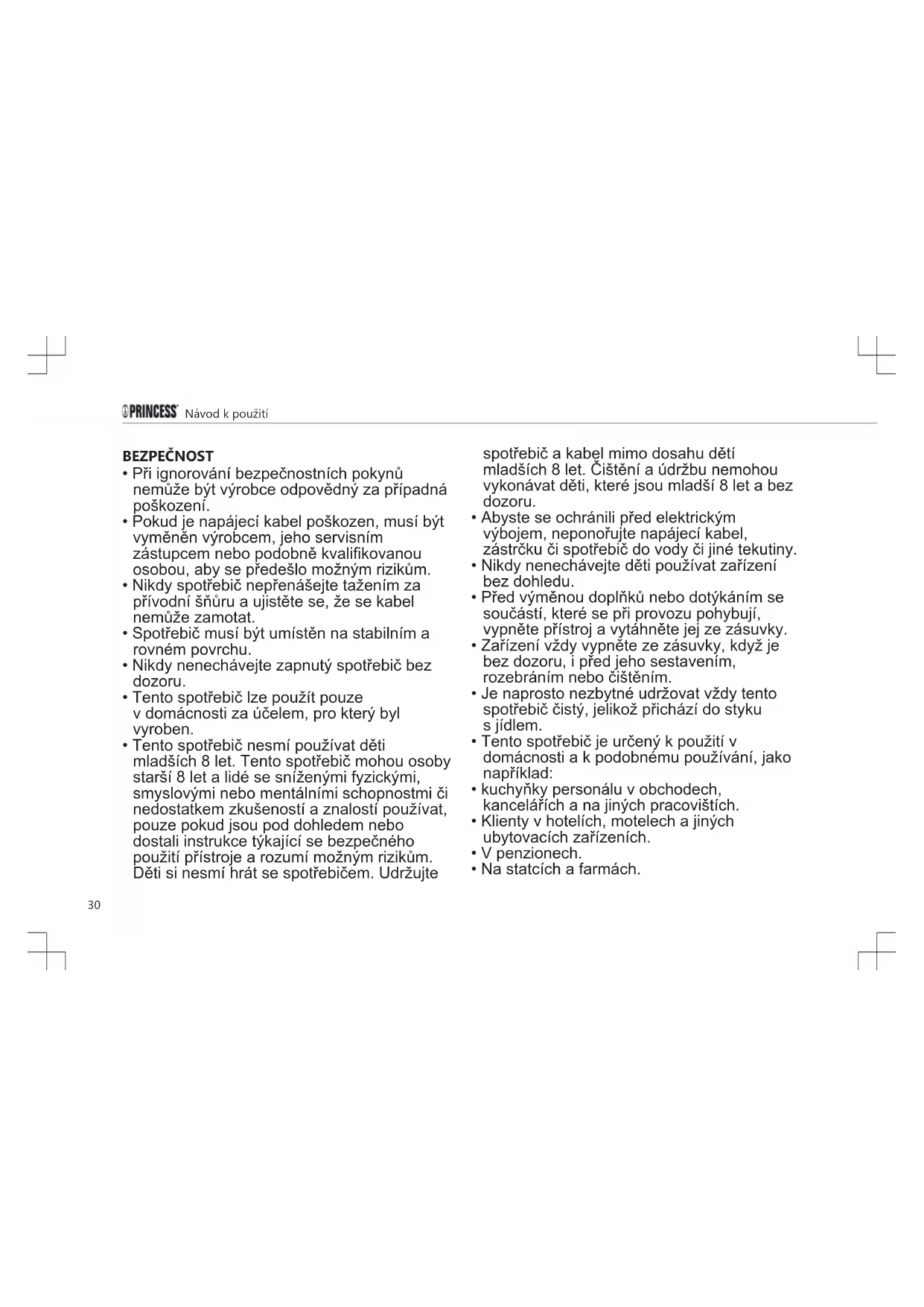 - Tento spotřebič je určený k použití v domácnosti a k podobnému používání, jako například:
