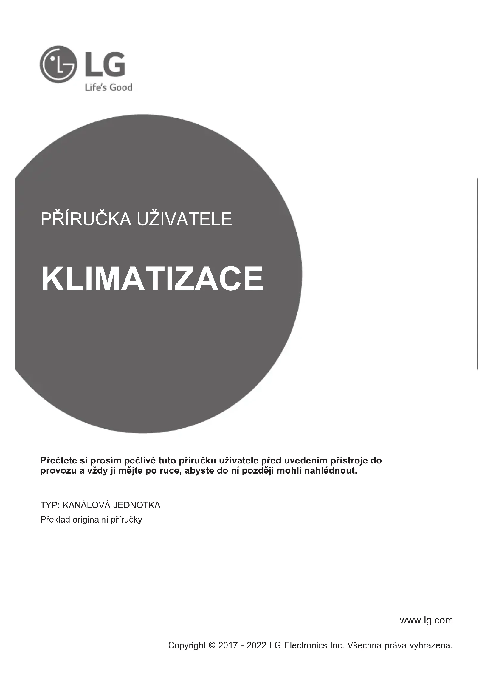 Překlad originální příručky Copyright © 2017 - 2022 LG Electronics Inc. Všechna práva vyhrazena.OBSAH Tato příručka může zahrnovat vyobrazení nebo obsah, které se liší od vámi zakou-peného typu. Tato příručka podléhá revizím ze strany výrobce.