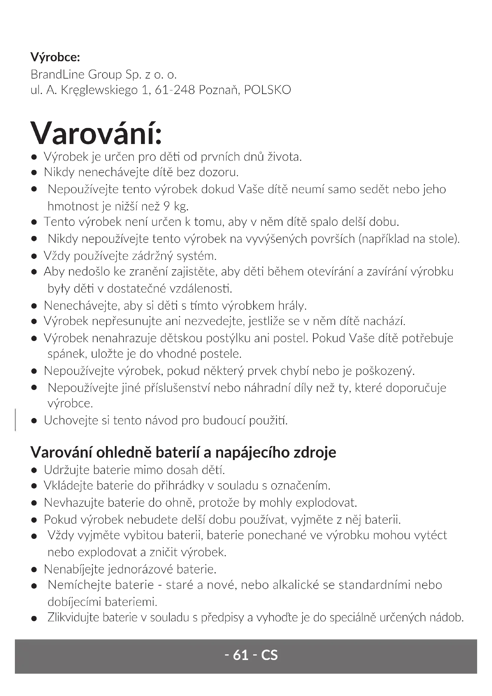 - Tento výrobek není určen k tomu, aby v něm dítě spalo delší dobu.