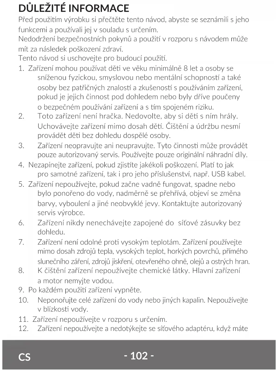 11. Zařízení nepoužívejte v rozporu s určením.