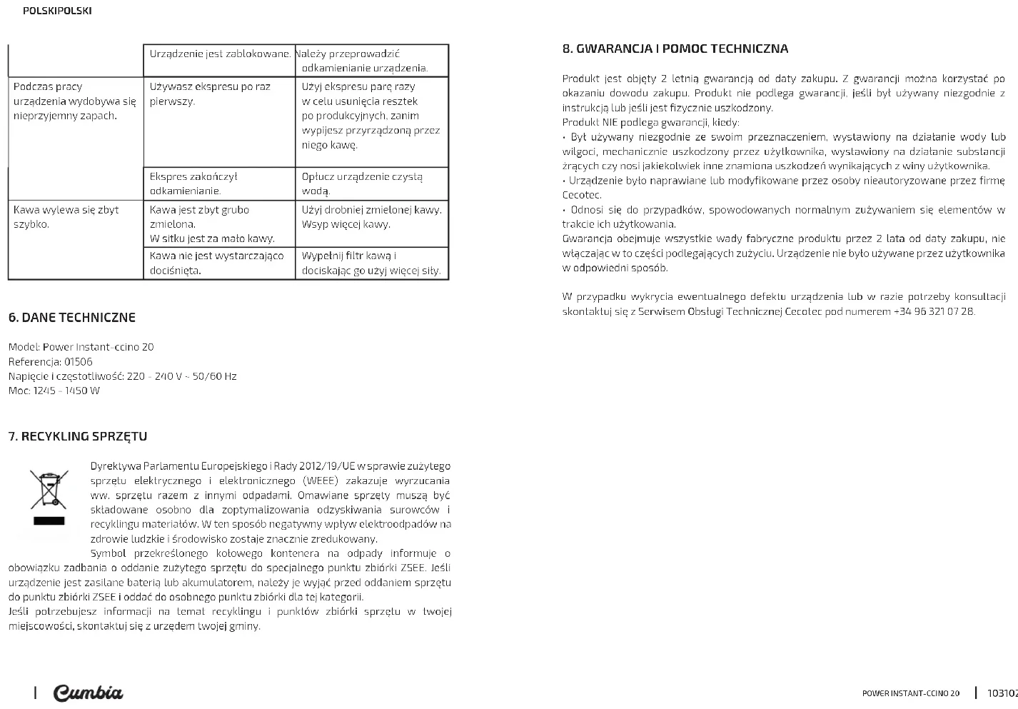 Najděte návod k zařízení zdarma Power Instantccino 20 CECOTEC ve formátu PDF.