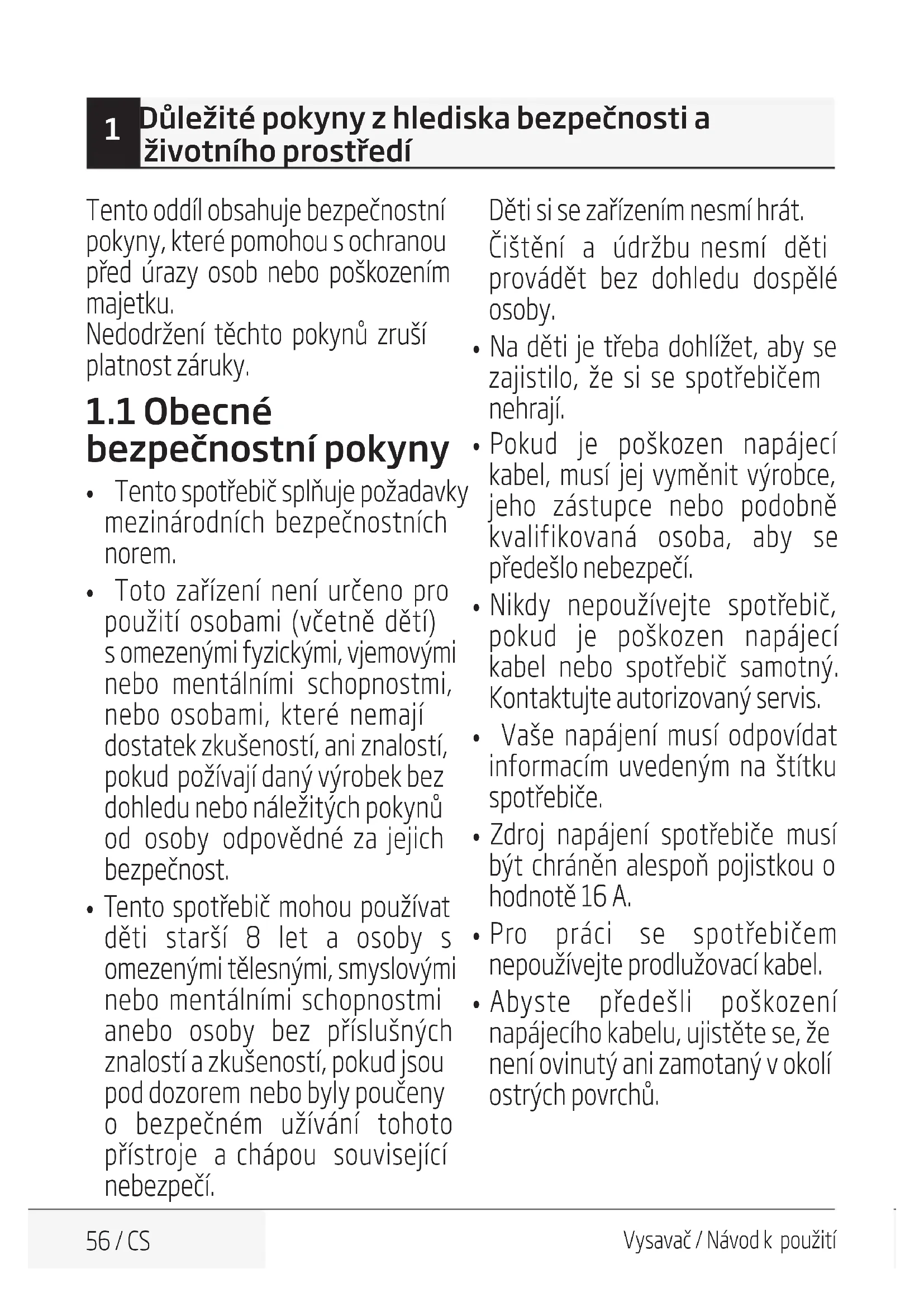 Důležité pokyny z hlediska bezpečnosti a životního prostředí58 / CS Vysavač / Návod k použití 2 Informace