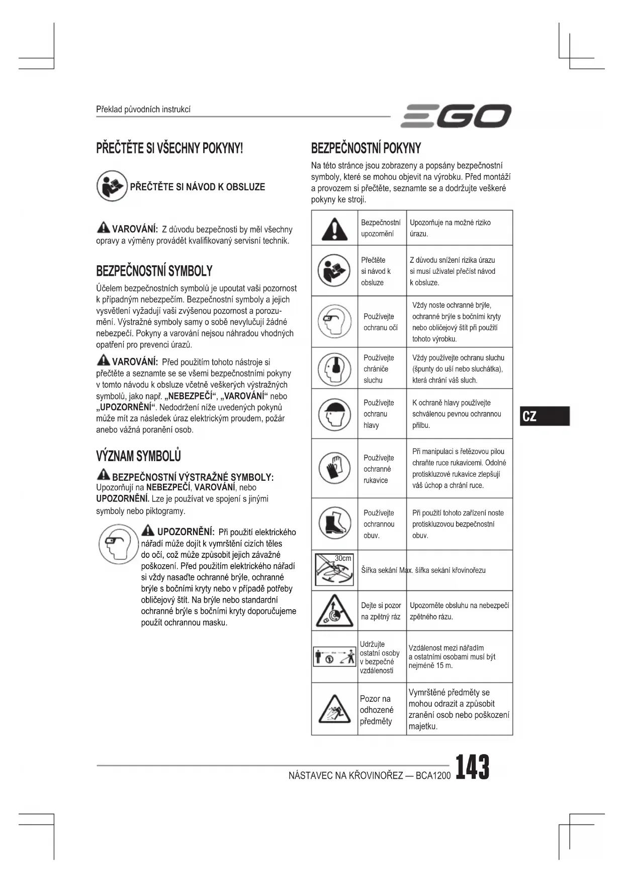Úplné záruční podmínky společnosti EGO naleznete na webové stránce egopowerplus.eu. Preklad originálnych pokynovNÁSTAVEC NA KROVINOREZ — BCA1200 153