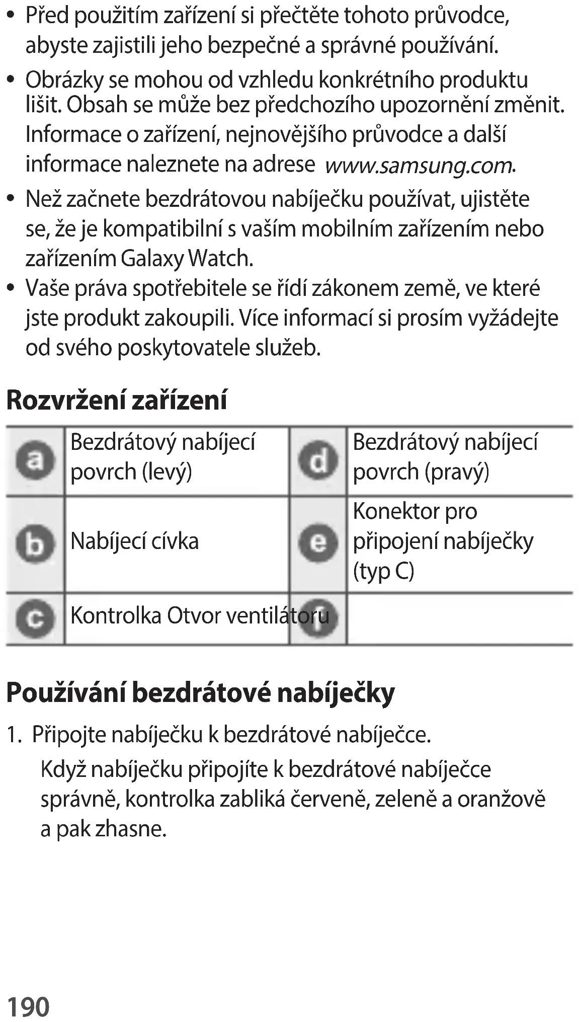 Než začnete bezdrátovou nabíječku používat, ujistěte se, že je kompatibilní svaším mobilním zařízením nebo zařízením Galaxy Watch.