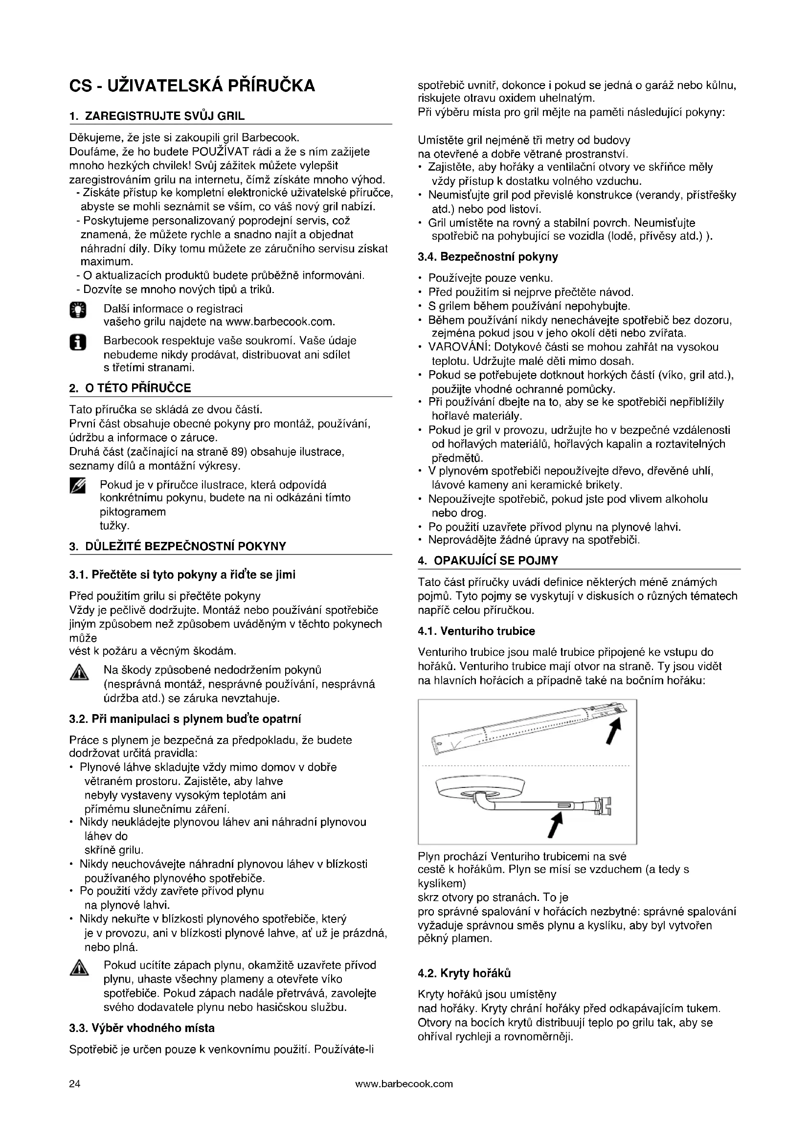 Děkujeme, že jste si zakoupili gril Barbecook. Doufáme, že ho budete POUŽÍVAT rádi a že s ním zažijete mnoho hezkých chvilek! Svůj zážitek můžete vylepšit zaregistrováním grilu na internetu, čímž získáte mnoho výhod. - Získáte přístup ke kompletní elektronické uživatelské příručce, abyste se mohli seznámit se vším, co váš nový gril nabízí. - Poskytujeme personalizovaný poprodejní servis, což znamená, že můžete rychle a snadno najít a objednat náhradní díly. Díky tomu můžete ze záručního servisu získat maximum. - O aktualizacích produktů budete průběžně informováni. - Dozvíte se mnoho nových tipů a triků. Další informace o registraci vašeho grilu najdete na www.barbecook.com. Barbecook respektuje vaše soukromí. Vaše údaje nebudeme nikdy prodávat, distribuovat ani sdílet s třetími stranami.