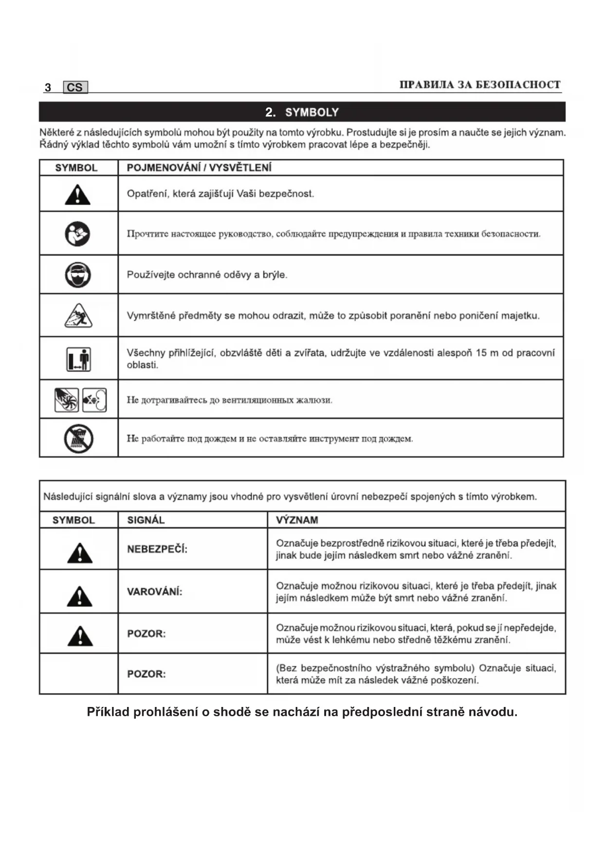 ..................................................CS22. CS3 Příklad prohlášení o shodě se nachází na předposlední straně návodu.CS4