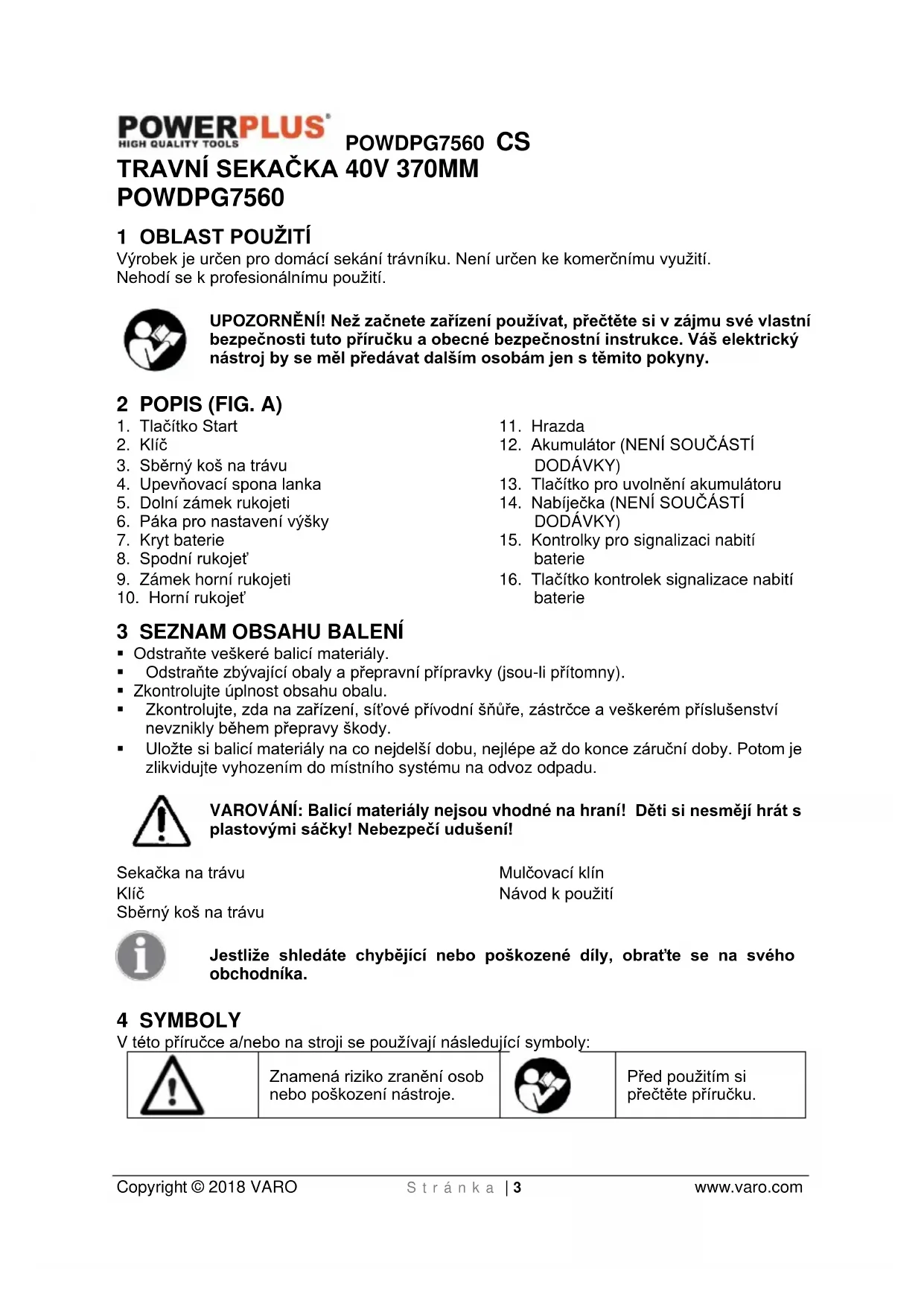 Před použitím si přečtěte příručku.POWDPG7560 CS Copyright © 2018 VARO S t r á n k a | 4 www.varo.com