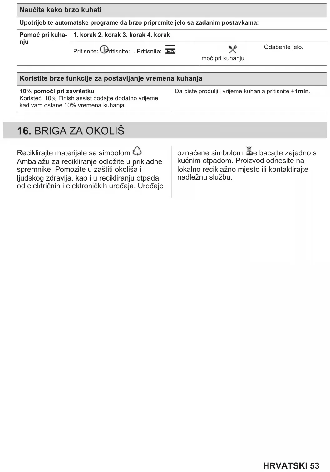 Reciklirajte materijale sa simbolom . Ambalažu za recikliranje odložite u prikladne spremnike. Pomozite u zaštiti okoliša i ljudskog zdravlja, kao i u recikliranju otpada od električnih i elektroničkih uređaja. Uređaje označene simbolom ne bacajte zajedno s kućnim otpadom. Proizvod odnesite na lokalno reciklažno mjesto ili kontaktirajte nadležnu službu. HRVATSKI 53Vítá vás Electrolux! Děkujeme vám, že jste si vybrali náš spotřebič. Rady ohledně používání, brožury, poradce při potížích a informace o servisu aopravách získáte na adrese electrolux.com/supportStáhněte si aplikaci My Electrolux Kitchen, kde naleznete další recepty, rady apokyny pro odstraňování potíží.Zmĕny vyhrazeny. OBSAH