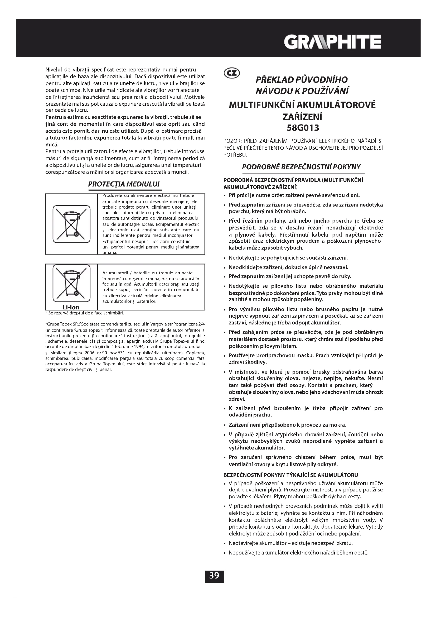 58G013 - Multifunkční nářadí Graphite - Bezplatný návod k obsluze