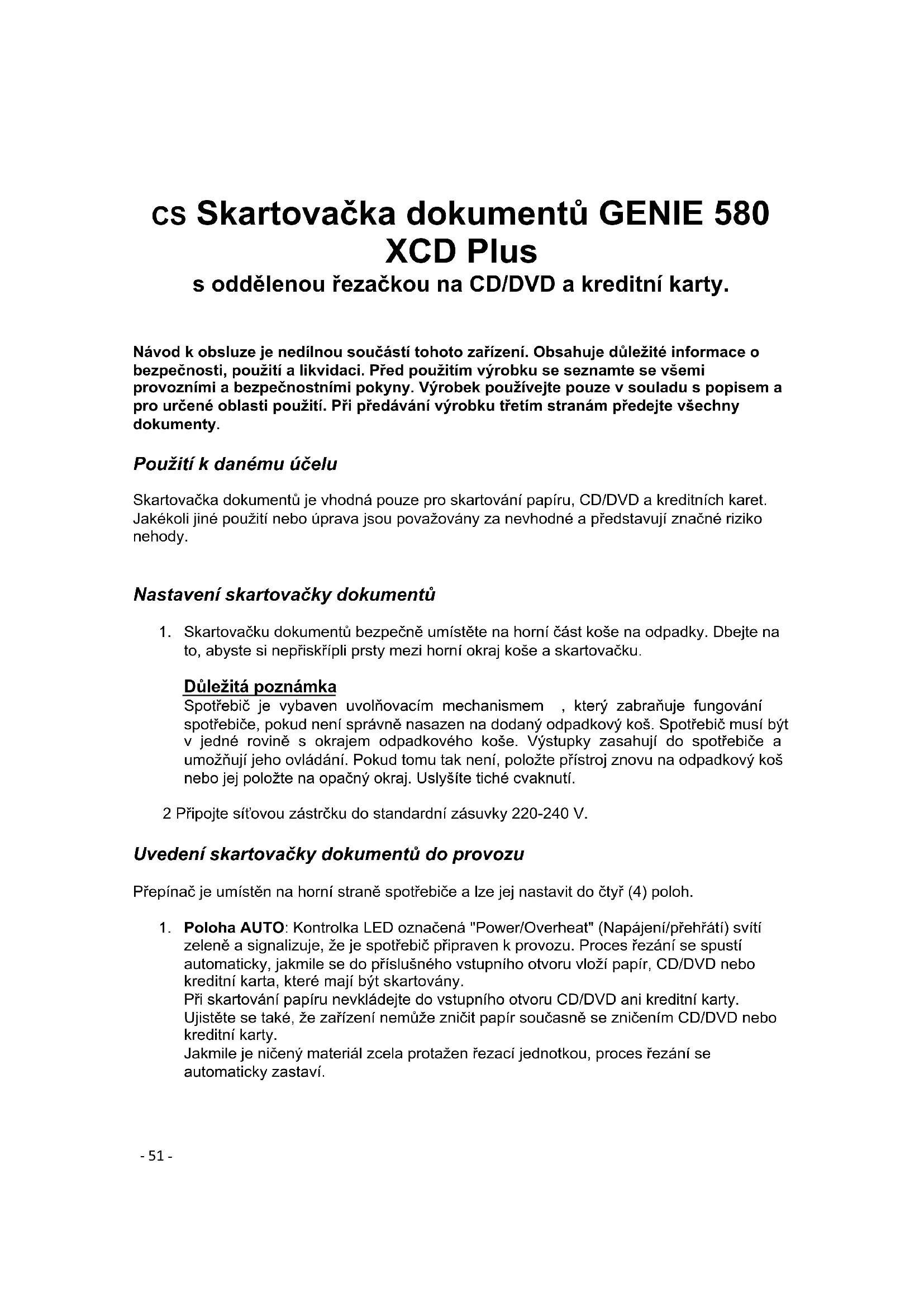 580 XCD Plus - Skartovač Genie - Bezplatný návod k obsluze