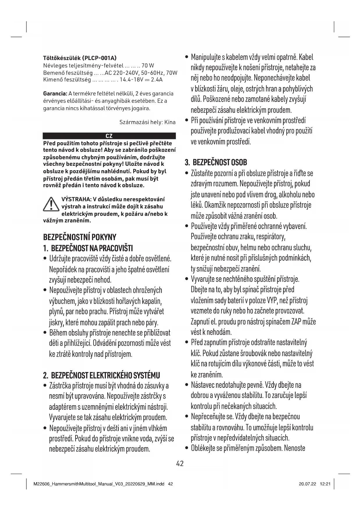 - Oblékejte se přiměřeným způsobem. Nenoste M22606_HammersmithMultitool_Manual_V03_20220629_MM.indd 42M22606_HammersmithMultitool_Manual_V03_20220629_MM.indd 42 20.07.22 12:2120.07.22 12:2142