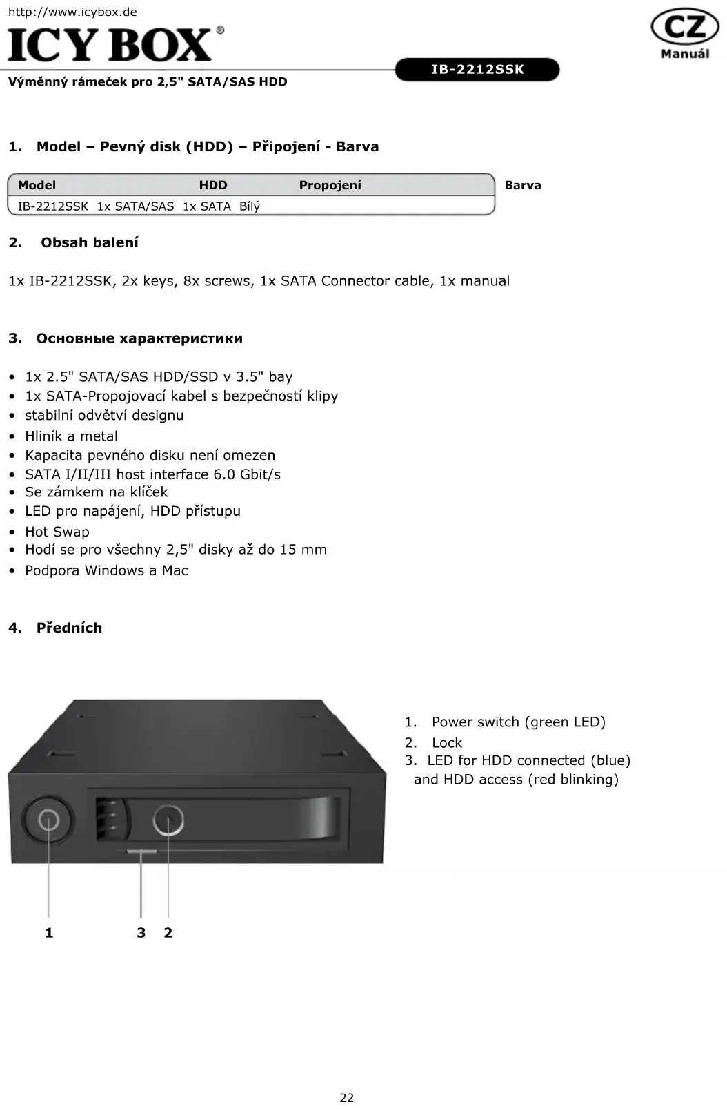 NÁVOD K OBSLUZE IB2212SSK Icy Box