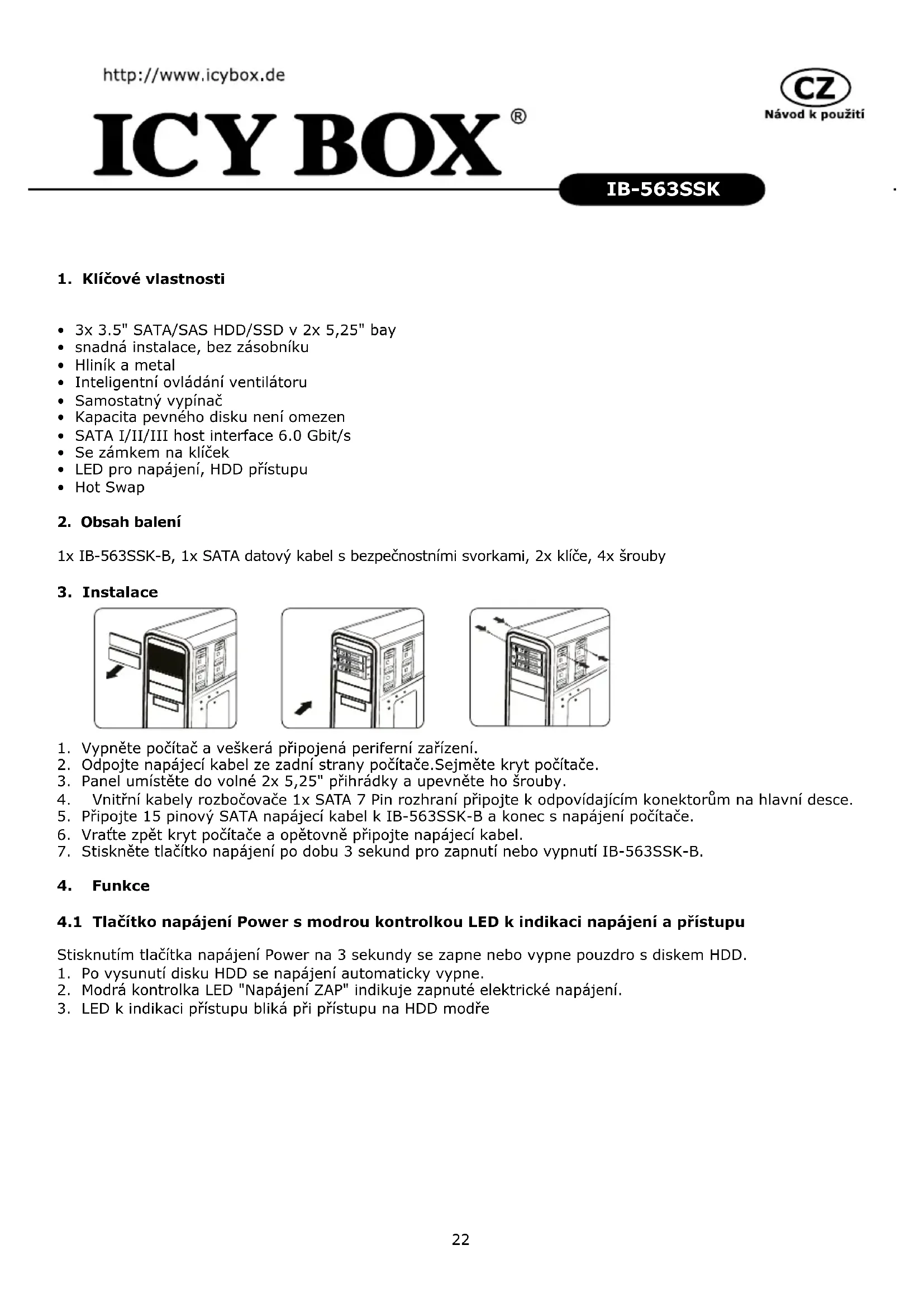 NÁVOD K OBSLUZE IB563SSK Icy Box