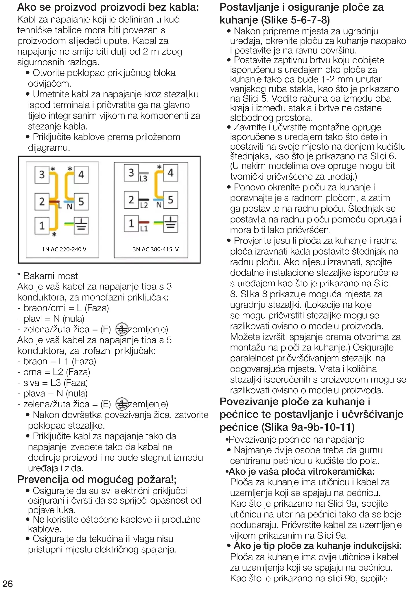 - Zajistěte, aby do místa připojení elektřiny nemohla vniknout voda ani vlhkost. Umístění a zajištění varné desky (obrázky 5-6-7-8)