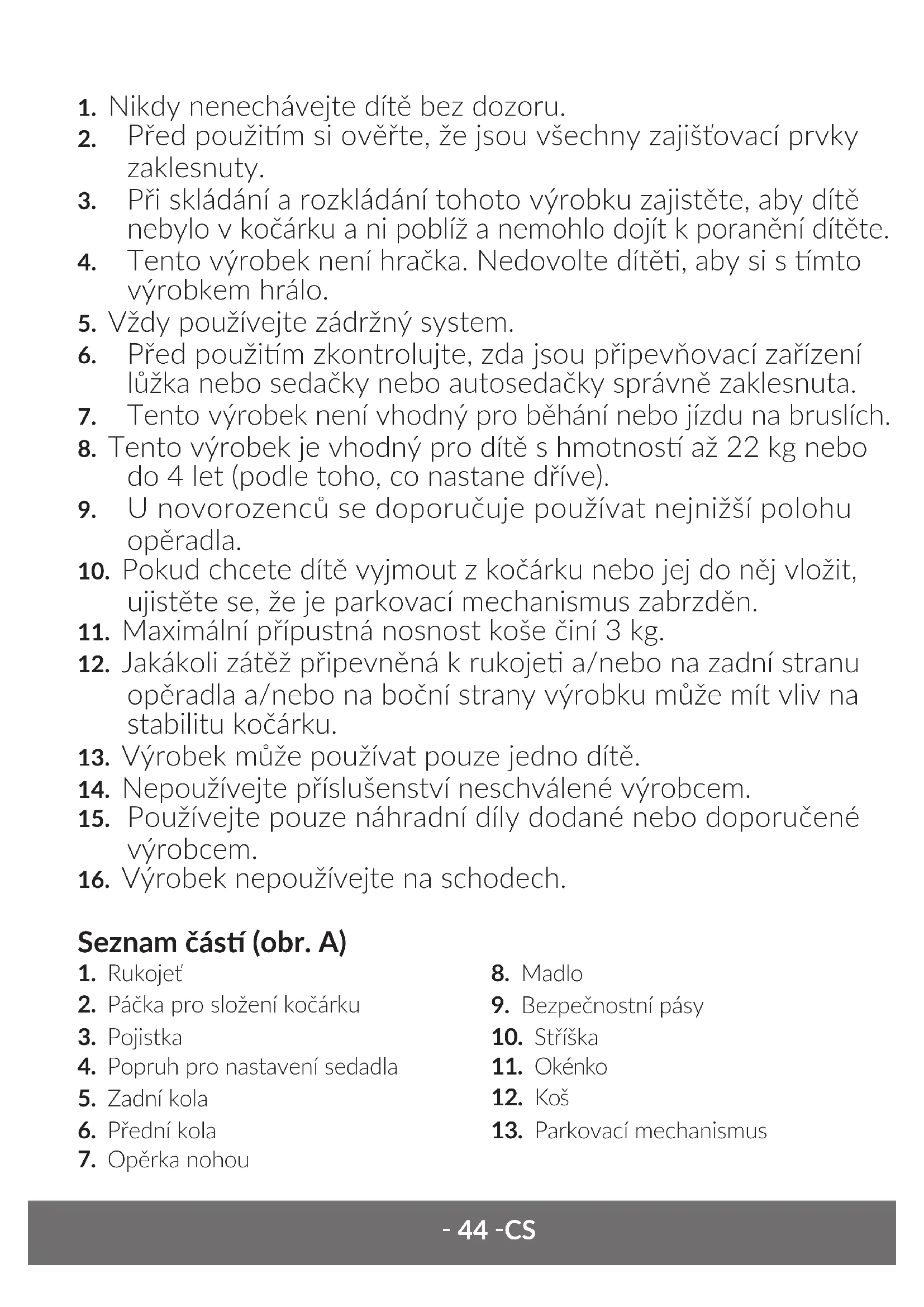 Při skládání a rozkládání tohoto výrobku zajistěte, aby dítě nebylo v kočárku a ni poblíž a nemohlo dojít k poranění dítěte.
