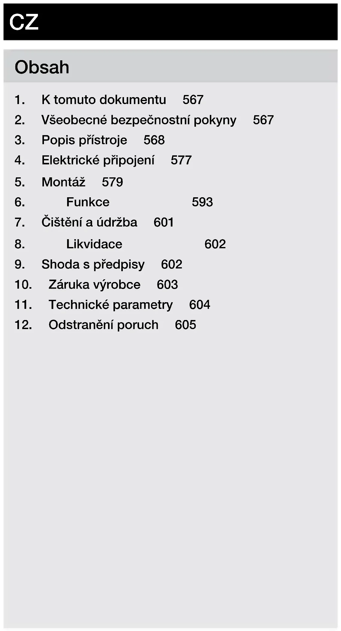 - Přístroj vyčistěte mírně navlhčenou utěrkou bez čisticích prostředků.– 602 – Obsah