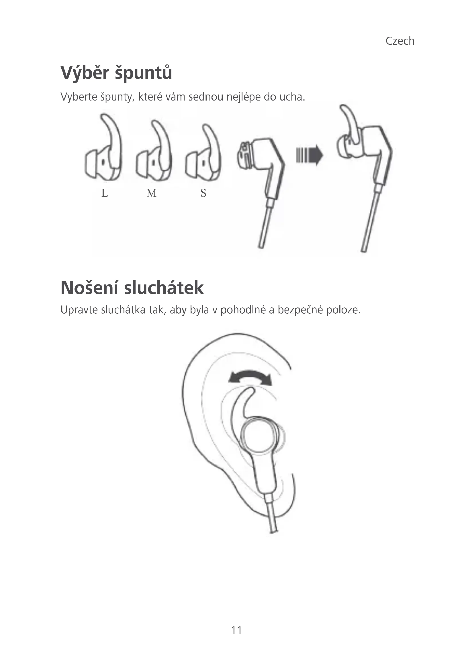 Nošení sluchátek Upravte sluchátka tak, aby byla v pohodlné a bezpečné poloze.