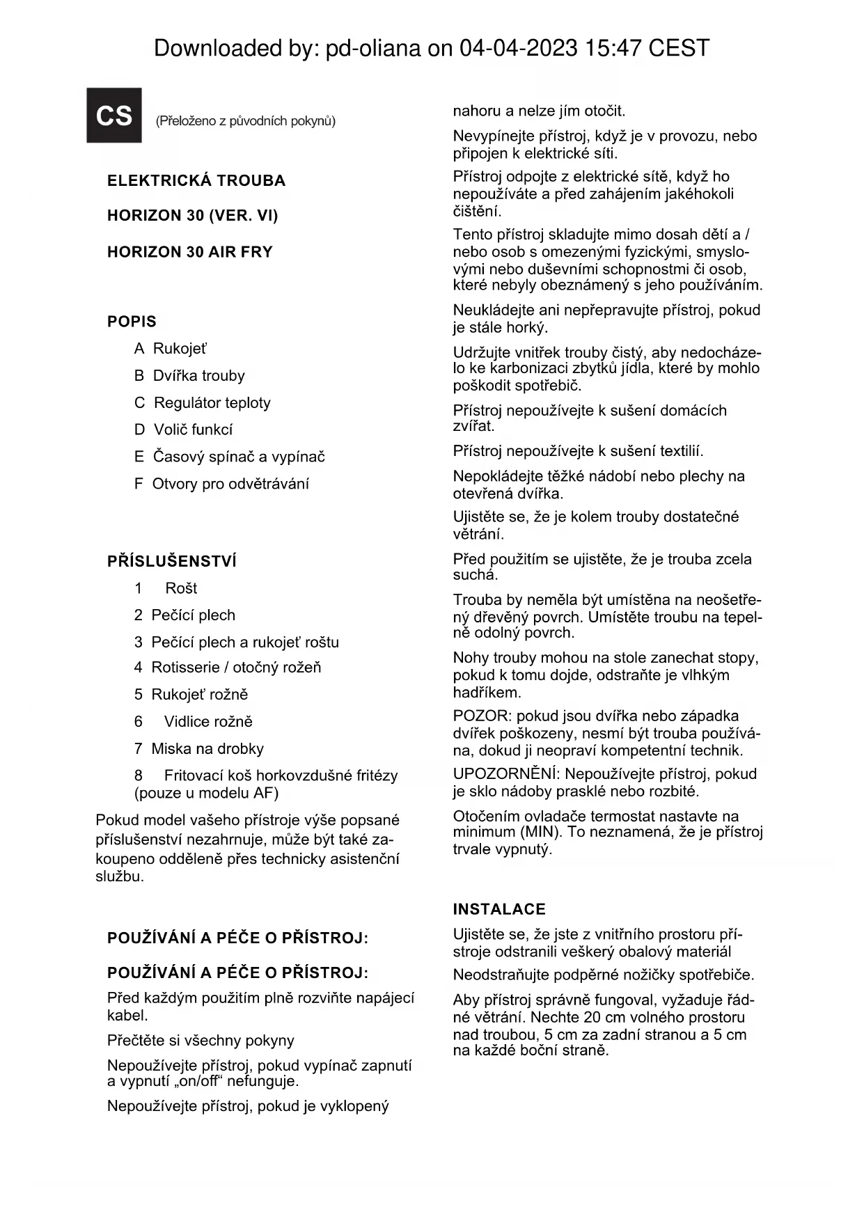 NÁVOD K OBSLUZE Horizon 30 Air Fry TAURUS