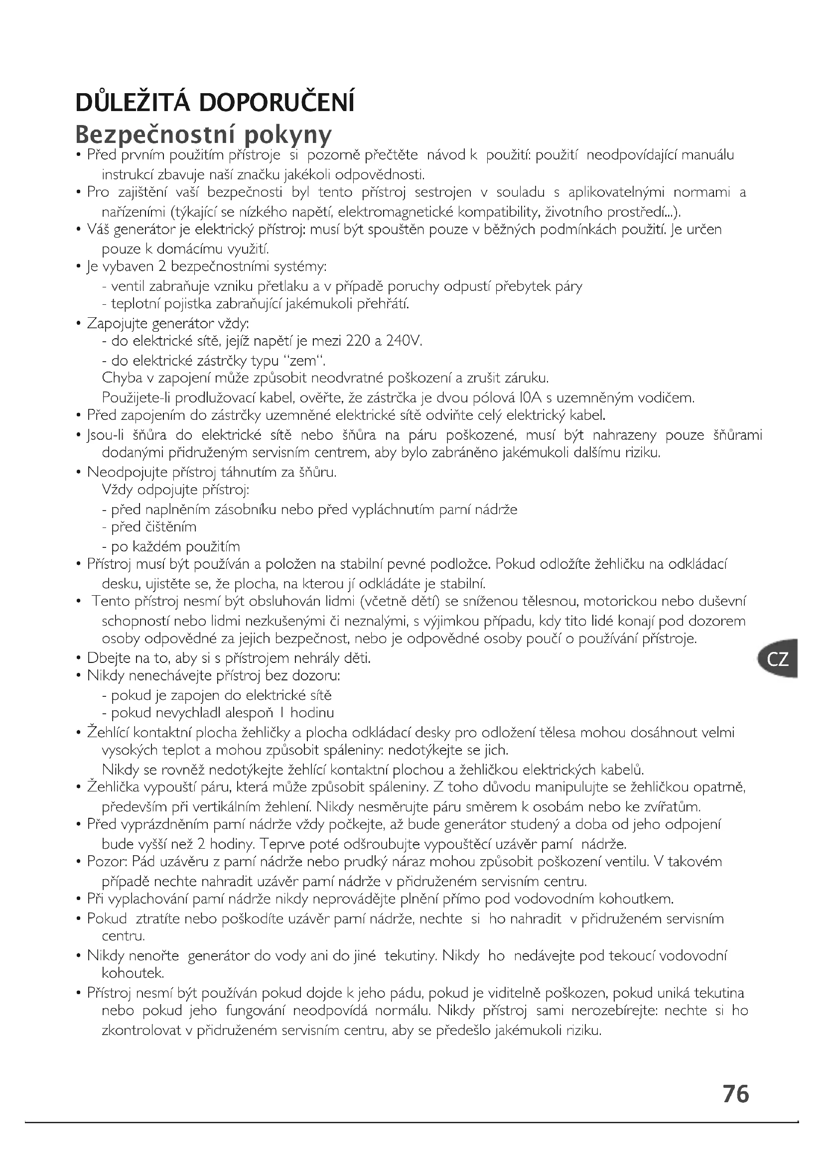 - Pfied prvním pouÏitím pfiístroje si pozornû pfieãtûte návod k pouÏití: pouÏití neodpovídající manuálu instrukcí zbavuje na‰í znaãku jakékoli odpovûdnosti.