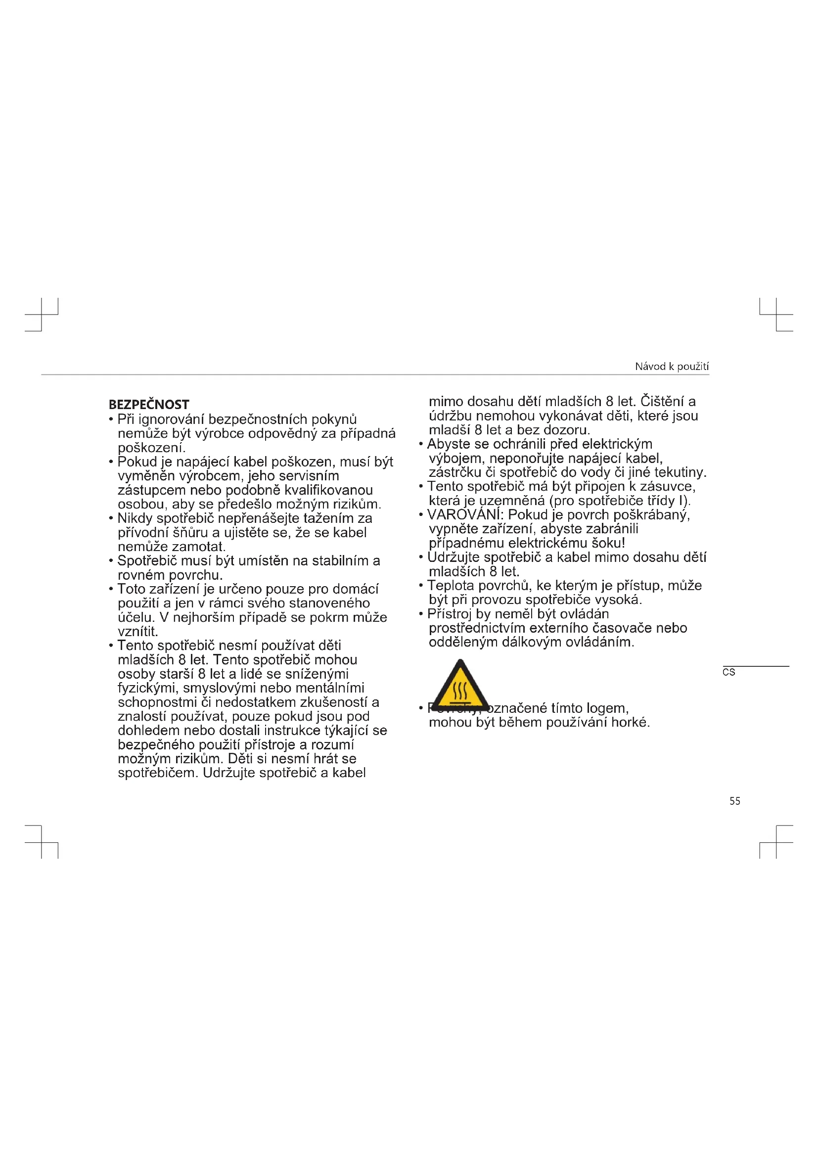- Povrchy, označené tímto logem, mohou být během používání horké. CSNávod k použití