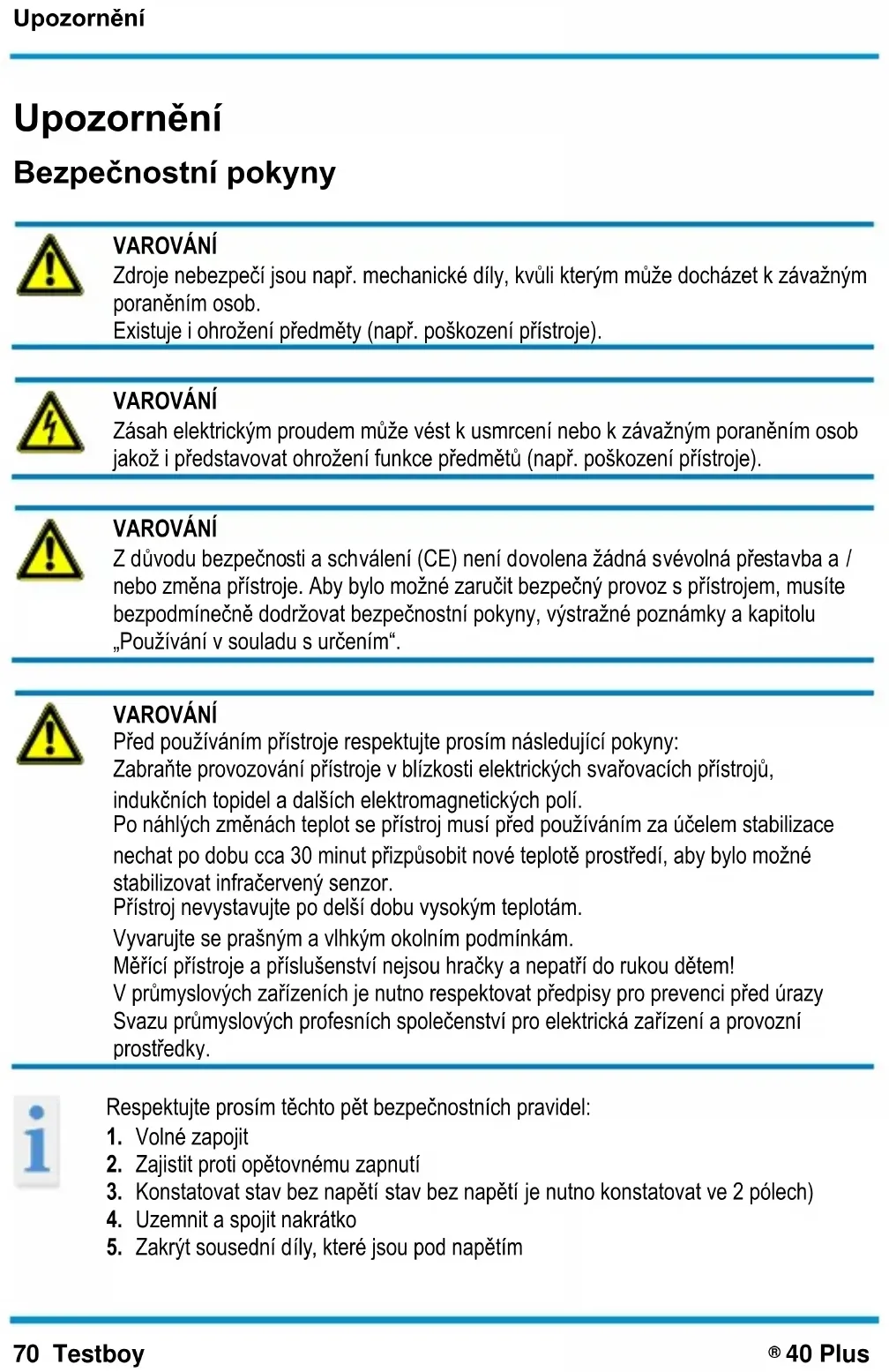 NÁVOD K OBSLUZE 40 Plus Testboy