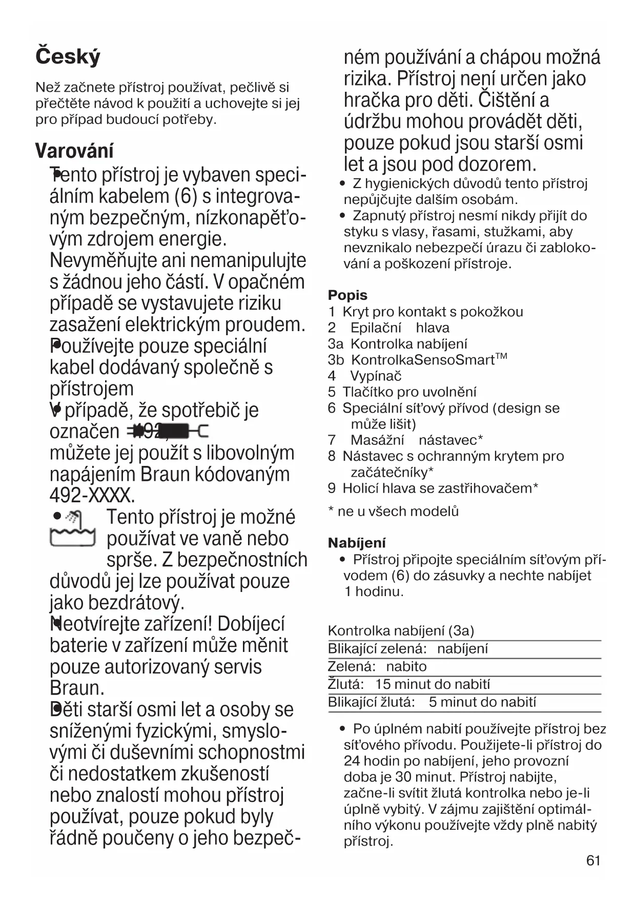 Neotvírejte zařízení! Dobíjecí baterie v zařízení může měnit pouze autorizovaný servis Braun.