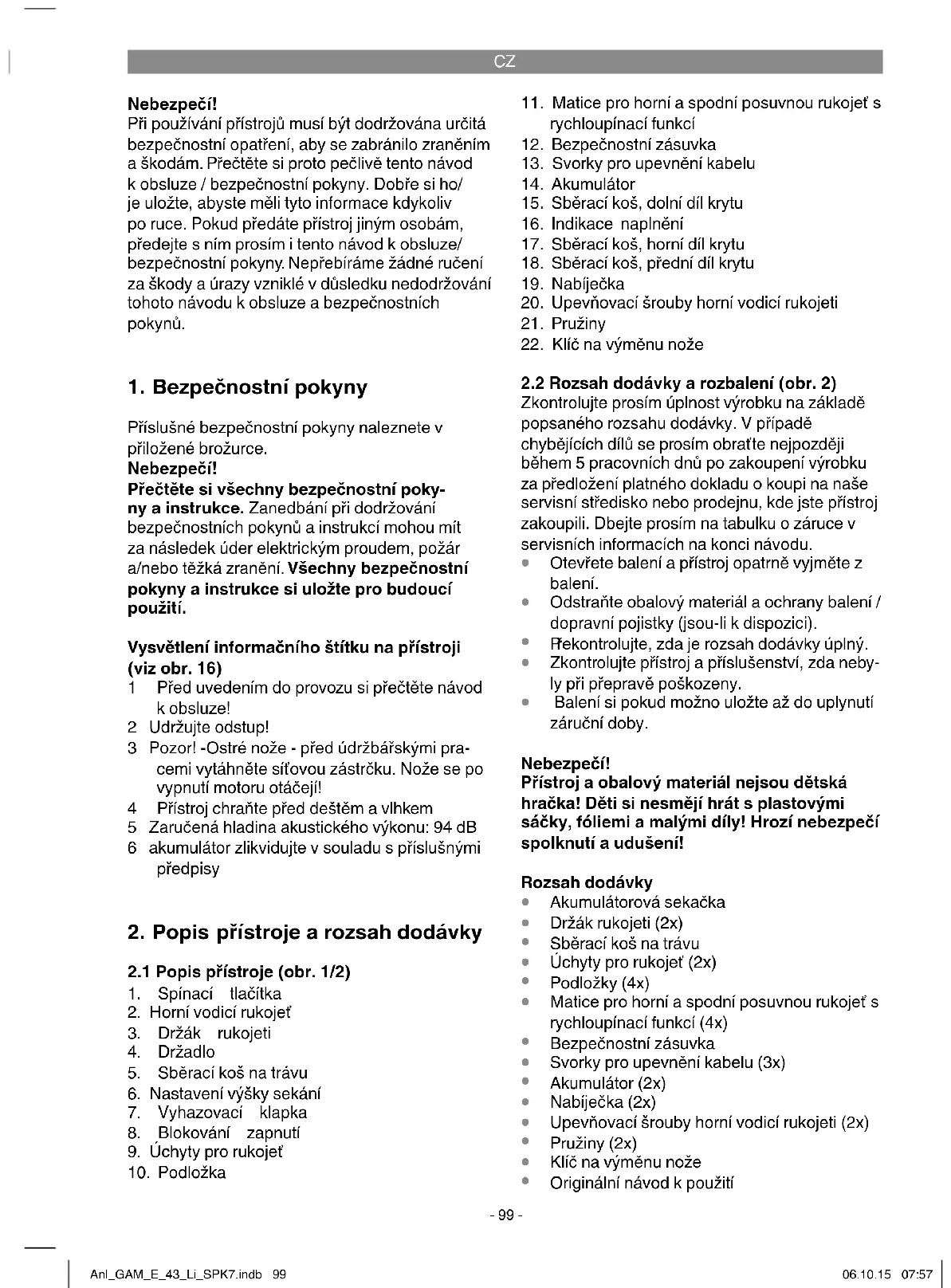 Originální návod k použití Anl_GAM_E_43_Li_SPK7.indb 99Anl_GAM_E_43_Li_SPK7.indb 99 06.10.15 07:5706.10.15 07:57CZ