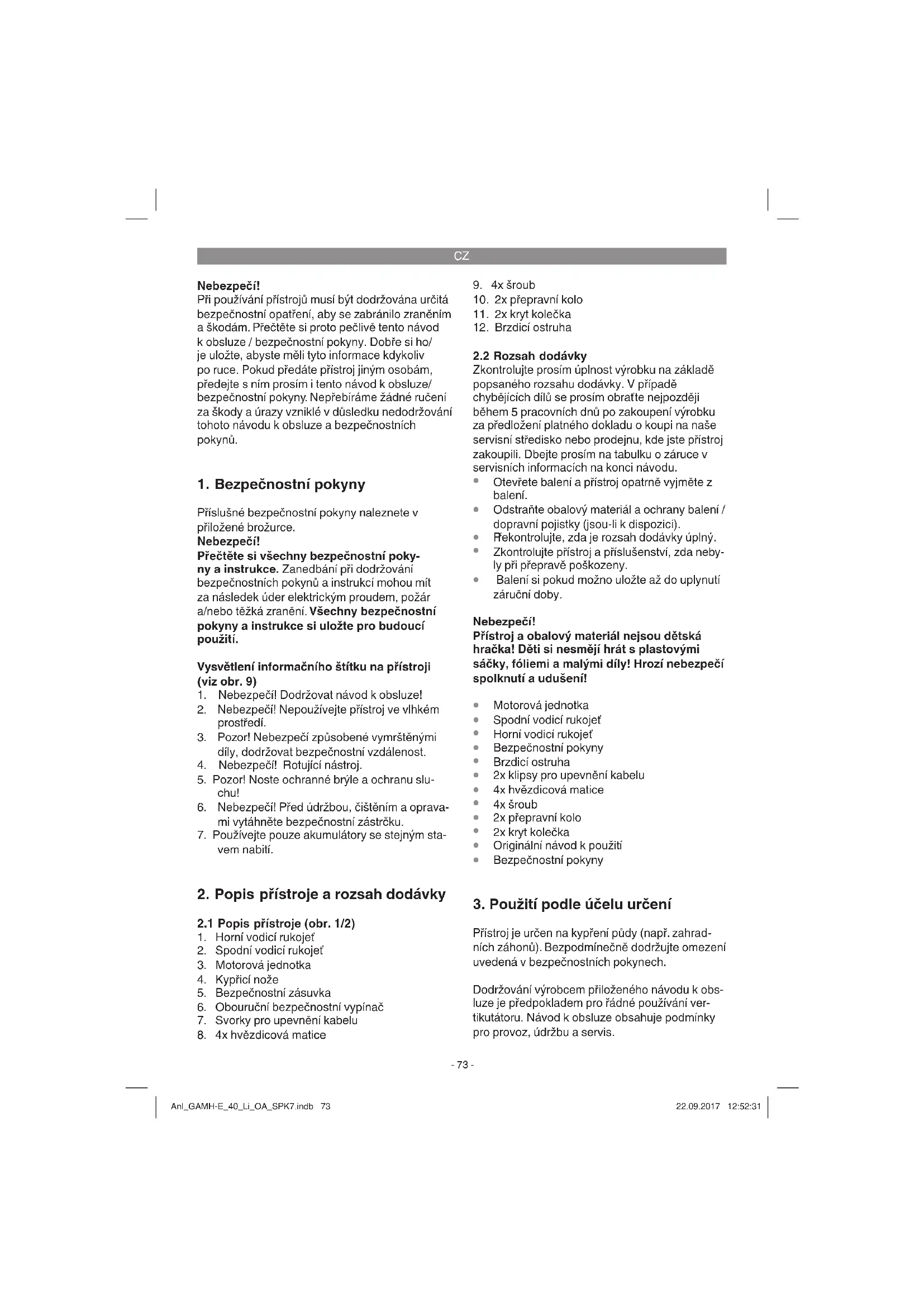 brací na ruce a paže, pokud se přístroj používá delší dobu nebo není řádně veden a udržován. Anl_GAMH-E_40_Li_OA_SPK7.indb 74Anl_GAMH-E_40_Li_OA_SPK7.indb 74 22.09.2017 12:52:3122.09.2017 12:52:31CZ