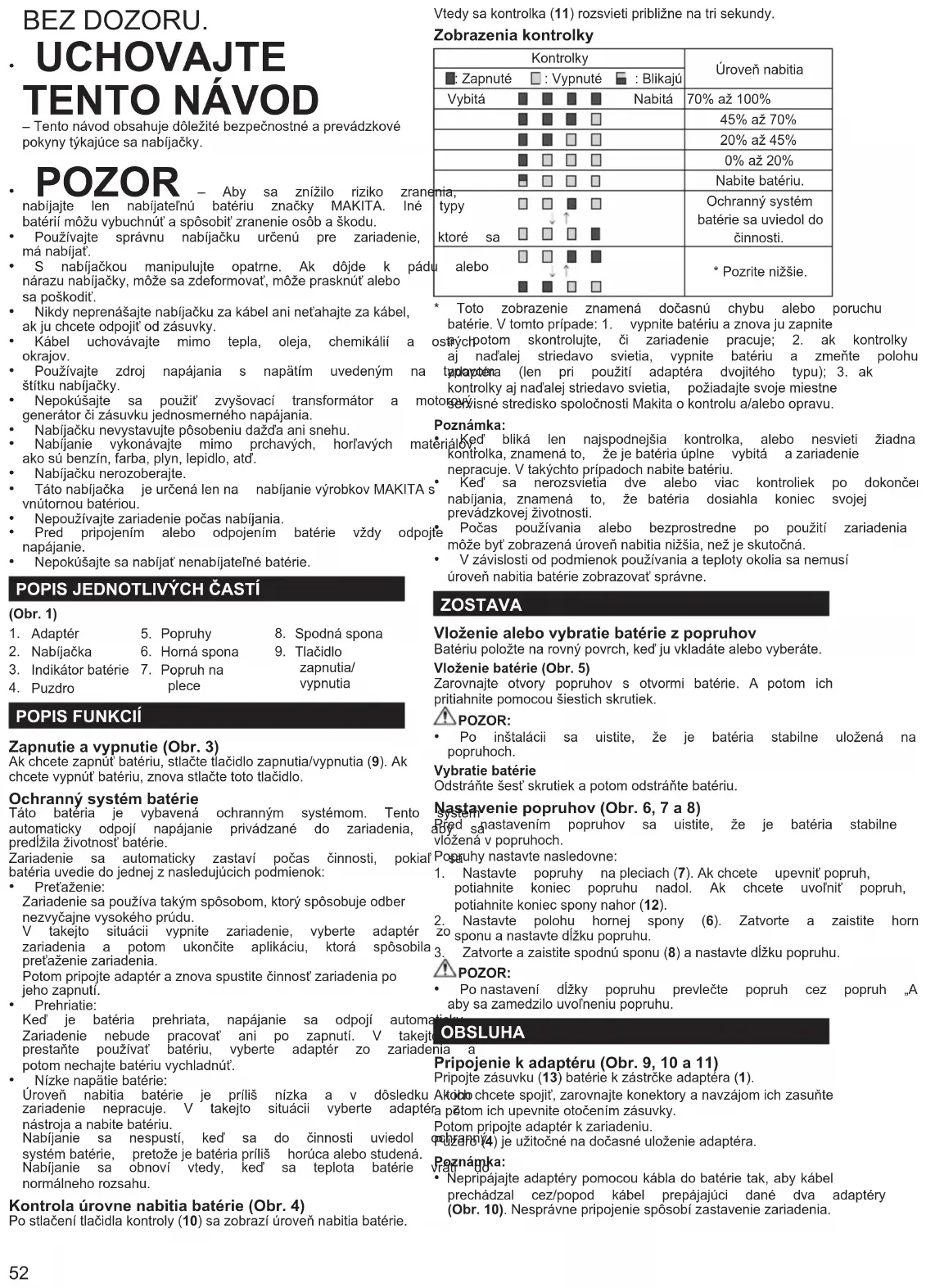 - Metody recyklace se mohou mezi jednotlivými zeměmi nebo státylišit.ObraťtesenanejbližšíautorizovanéservisnístřediskoMakitanebonadistributora. BEZPEČNOSTNÍ INSTRUKCE PRO NABÍJEČKA AKUMULÁTORŮ UPOZORNĚNÍ: