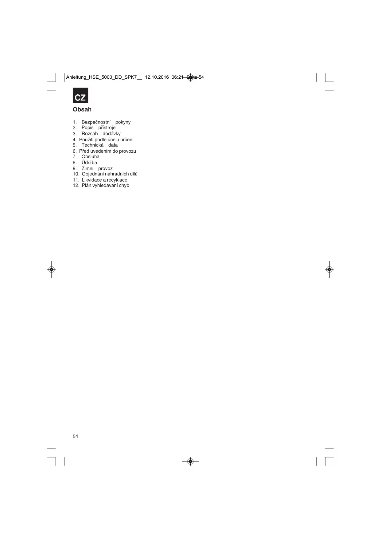 Pokud je defekt přístroje zahrnut v naší záruce, obdržíte obratem zpátky opravený nebo nový přístroj. V případě rychle opotřebitelných dílů, spotřebních dílů a chybějících dílů poukazujeme na omezení této záruky podle servisních informací uvedených v tomto návodu k obsluze. Anleitung_HSE_5000_DD_SPK7__ 12.10.2016 06:21 Seite 176177