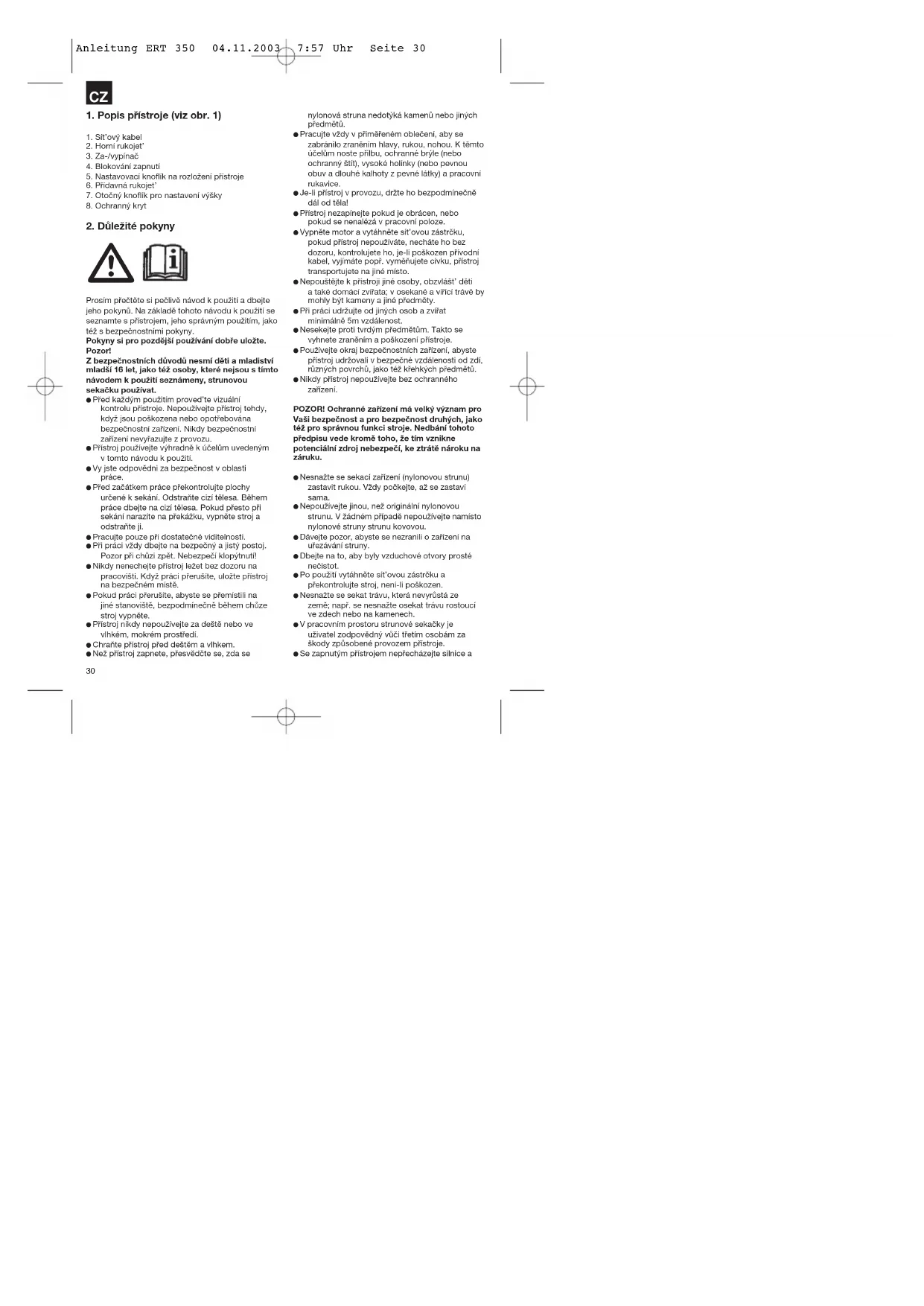 Anleitung ERT 350 04.11.2003 7:57 Uhr Seite 3233 Při prvním zapnutí je struna automaticky zkrácena na optimální délku. Pozor! Vymrštěné části nylonové struny mohou vést ke zraněním!
