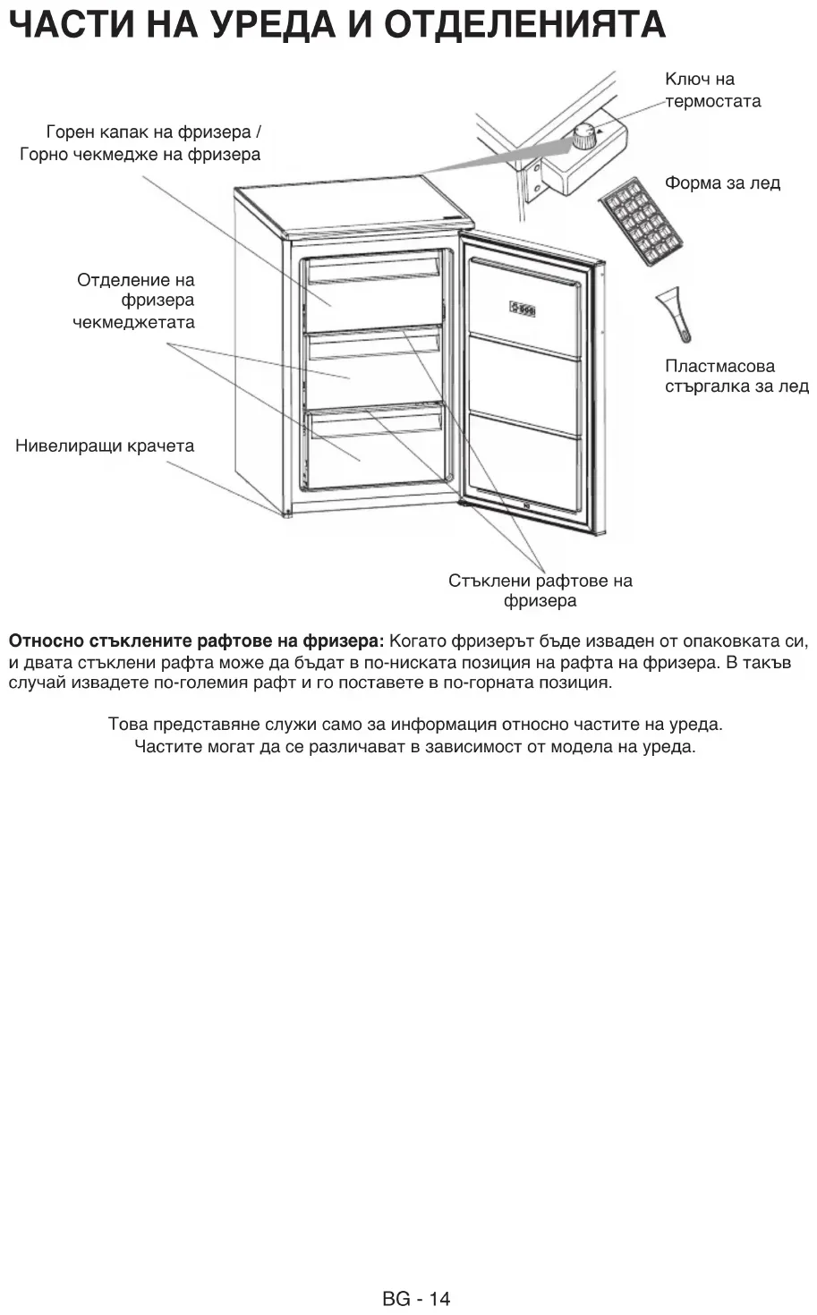 - Mrazicí oddíl se používá pro zmrazování čerstvých potravin, pro uložení mražených potravin po dobu uvedenou na obalu a pro přípravu ledových kostek.