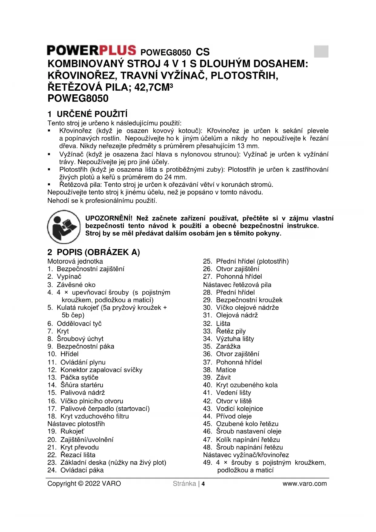 Udržujte bezpečnou vzdálenost!POWEG8050 CS Copyright © 2022 VARO Stránka | 6 www.varo.com