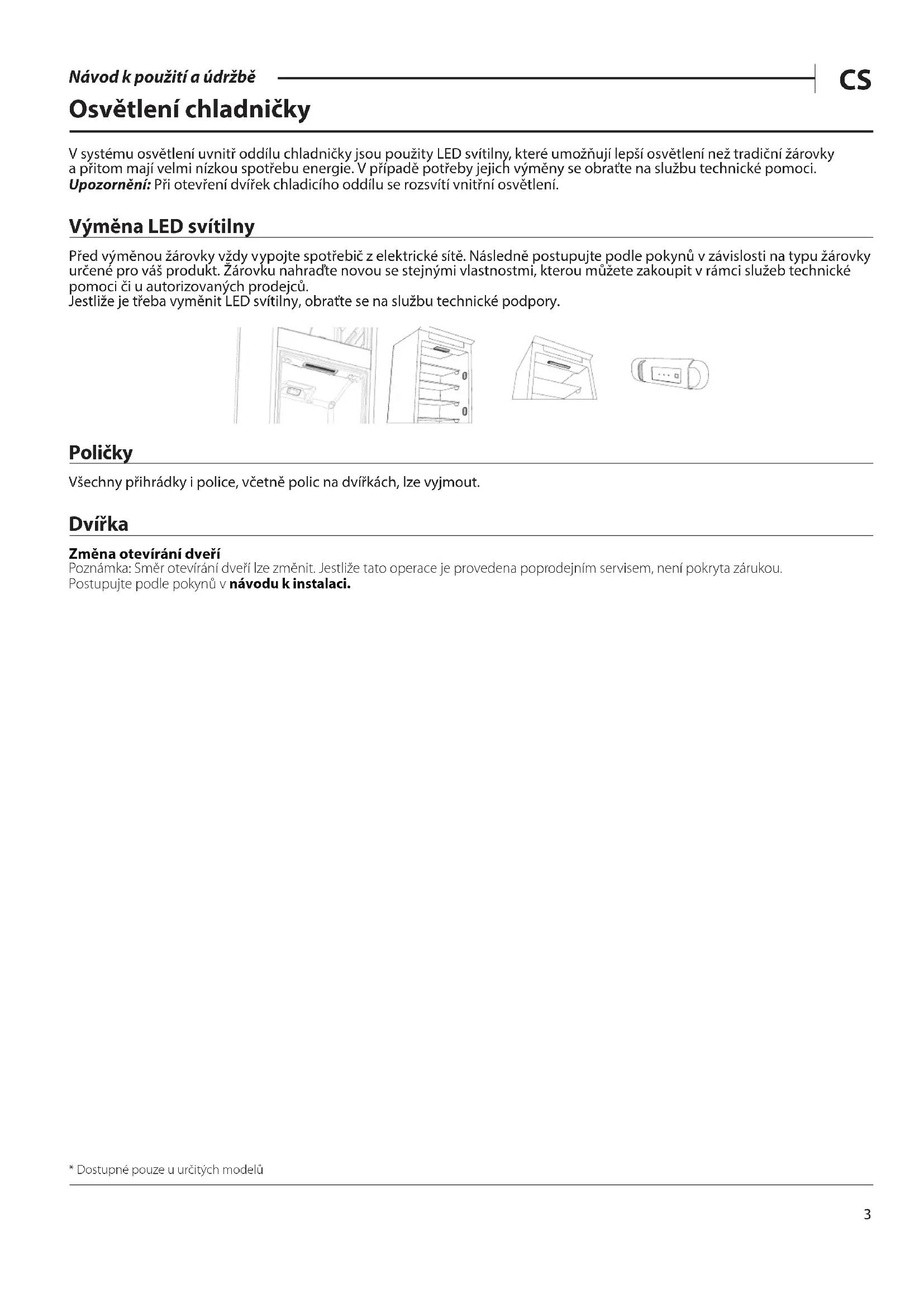 Návod kpoužití aúdržbě Příslušenství* ZÁSOBNÍK NA VEJCE POLICE NA LÁHVE POLICE NA LÁHVE PODLOŽKA PRO CHLADNIČKU PODLOŽKA PRO MRAZNIČKU NÁDOBA NA LED