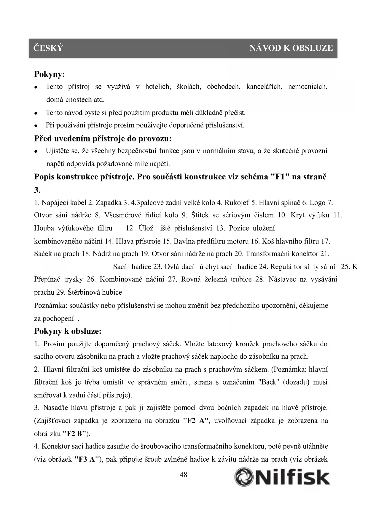 NÁVOD K OBSLUZE VP100 NILFISK