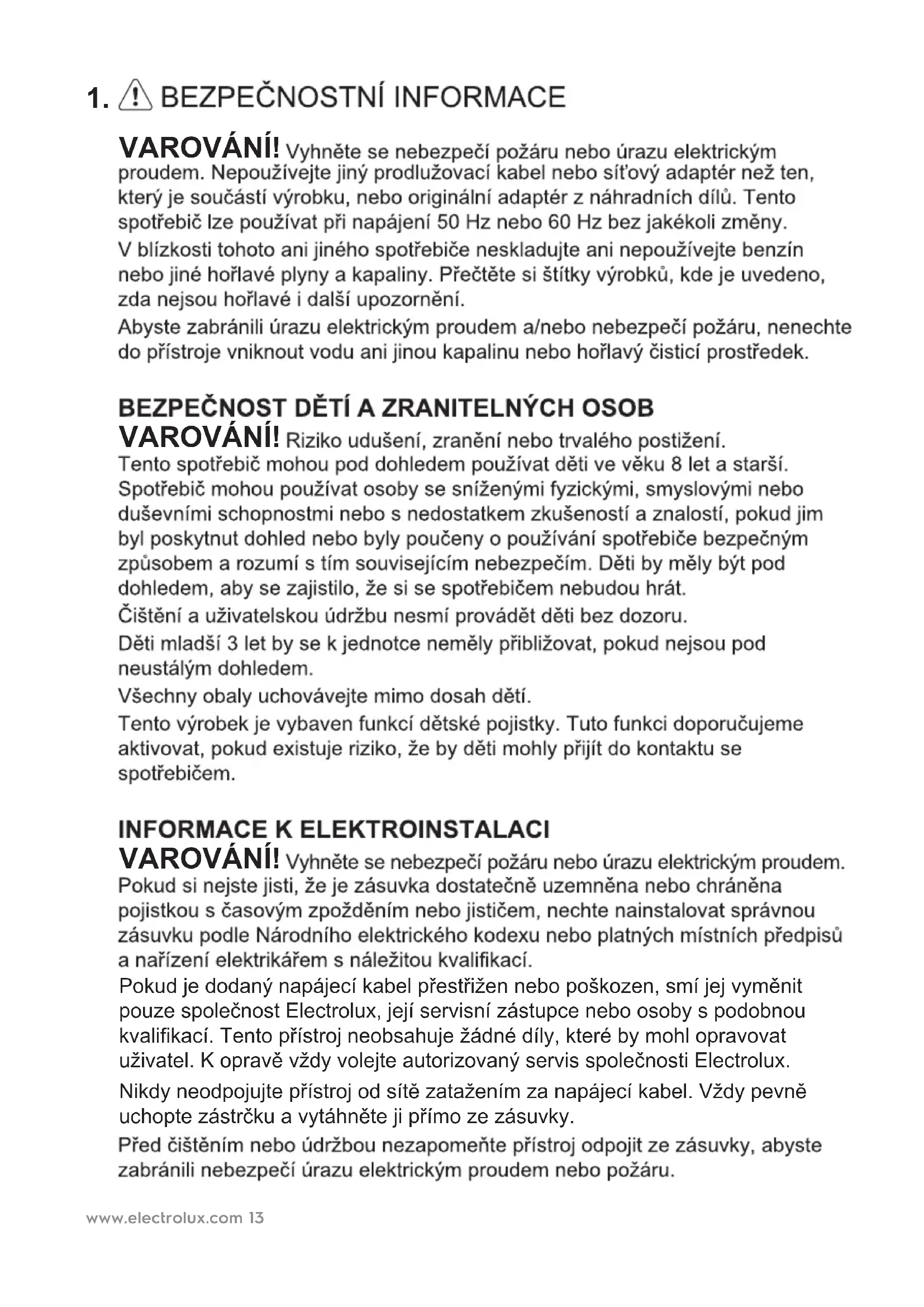 6www.electrolux.com 17 Další detaily popisu vyobrazení viz strany 18-20. Abyste mohli zařízení v klidu používat, zaregistrujte se dnes na adrese www.electrolux.com. Pro zajištění lepších služeb, bezpečnostních upozornění a nákup doplňků kompatibilních s tímto zařízením mějte k dispozici aktualizované znění. Při vydání nových aplikací mohou být jednotlivé prvky dodány nebo aktualizovány.