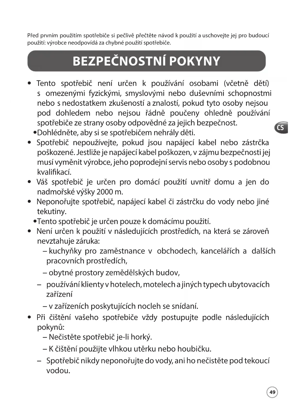 - Tento spotřebič je určen pouze kdomácímu použití.