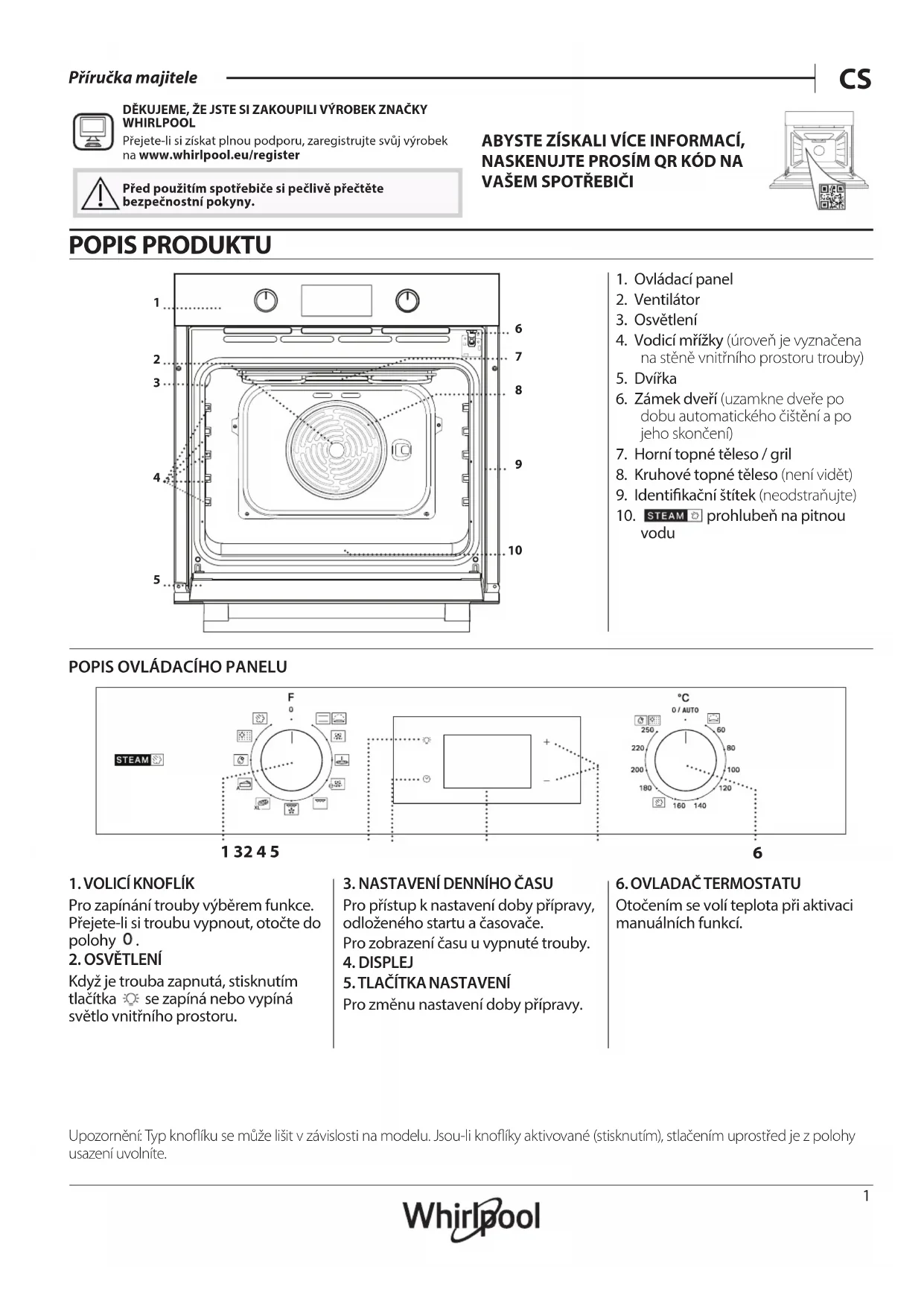 - Dostupné pouze uurčitých modelů Zásady, standardní dokumentaci adalší informace ovýrobku naleznete:• Pomocí QR kódu ve vašem spotřebiči• nanaší webové stránce docs.whirlpool .eu,