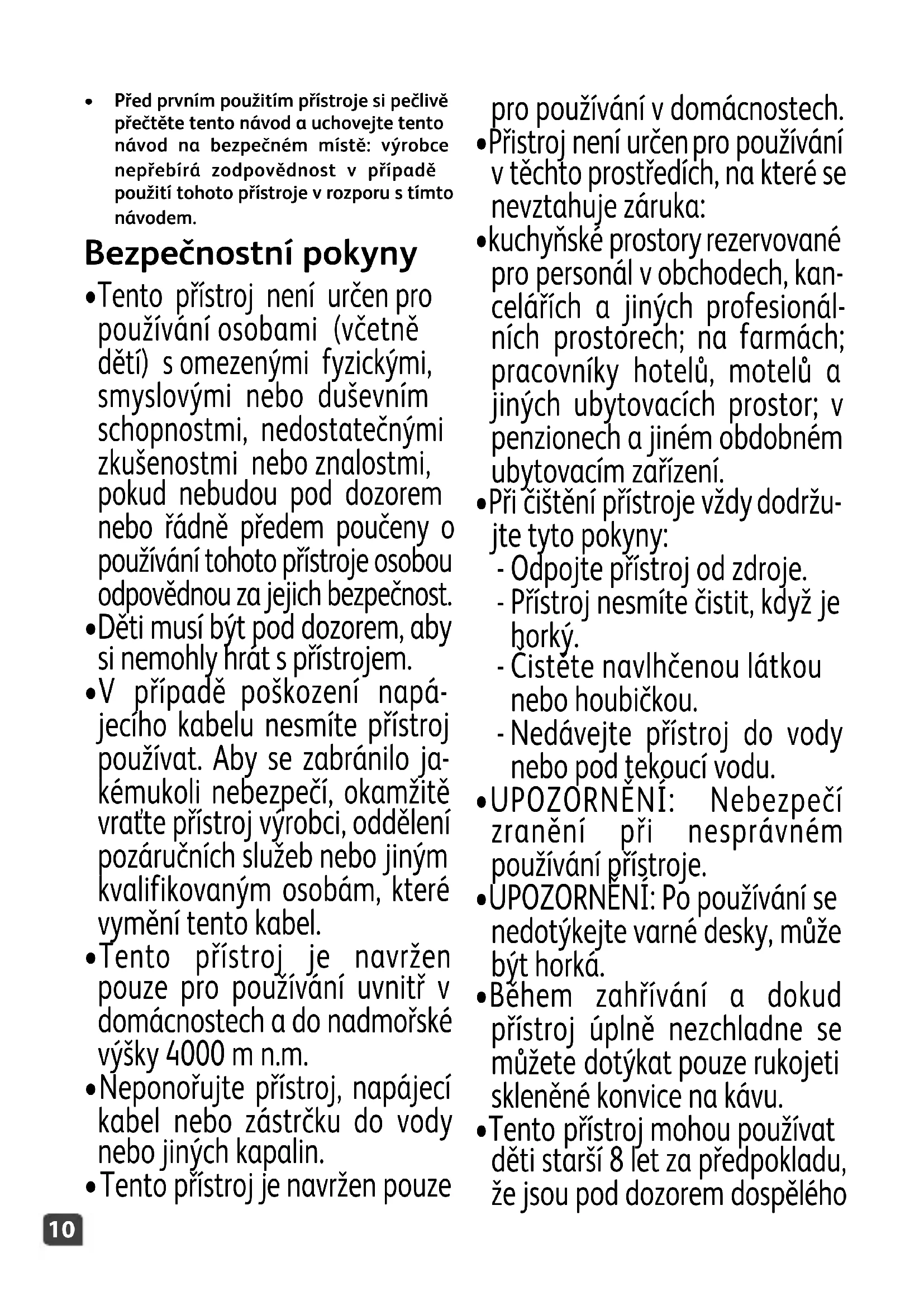 - Tento přístroj je navržen pouze pro používání v domácnostech.