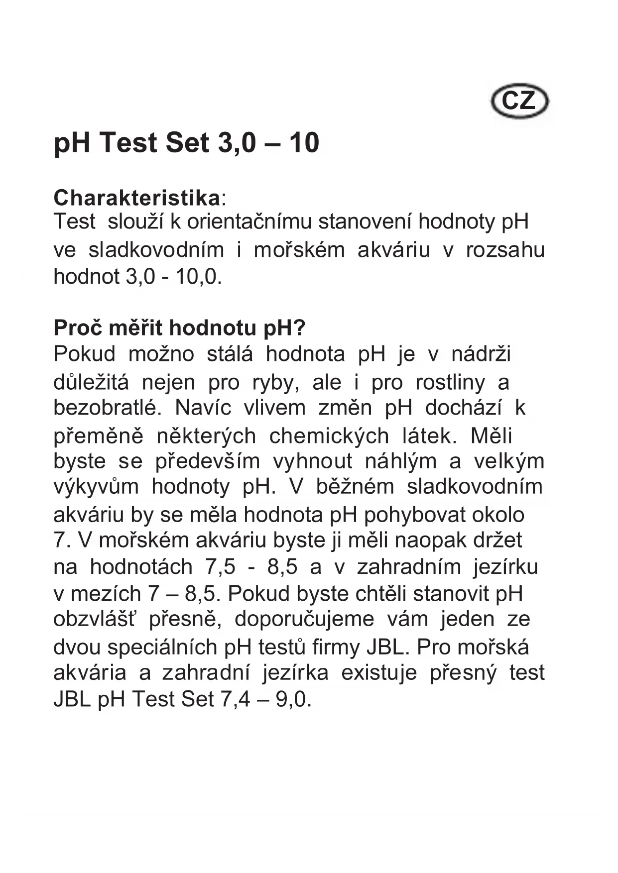NÁVOD K OBSLUZE pH 3 0-10 0 Test JBL