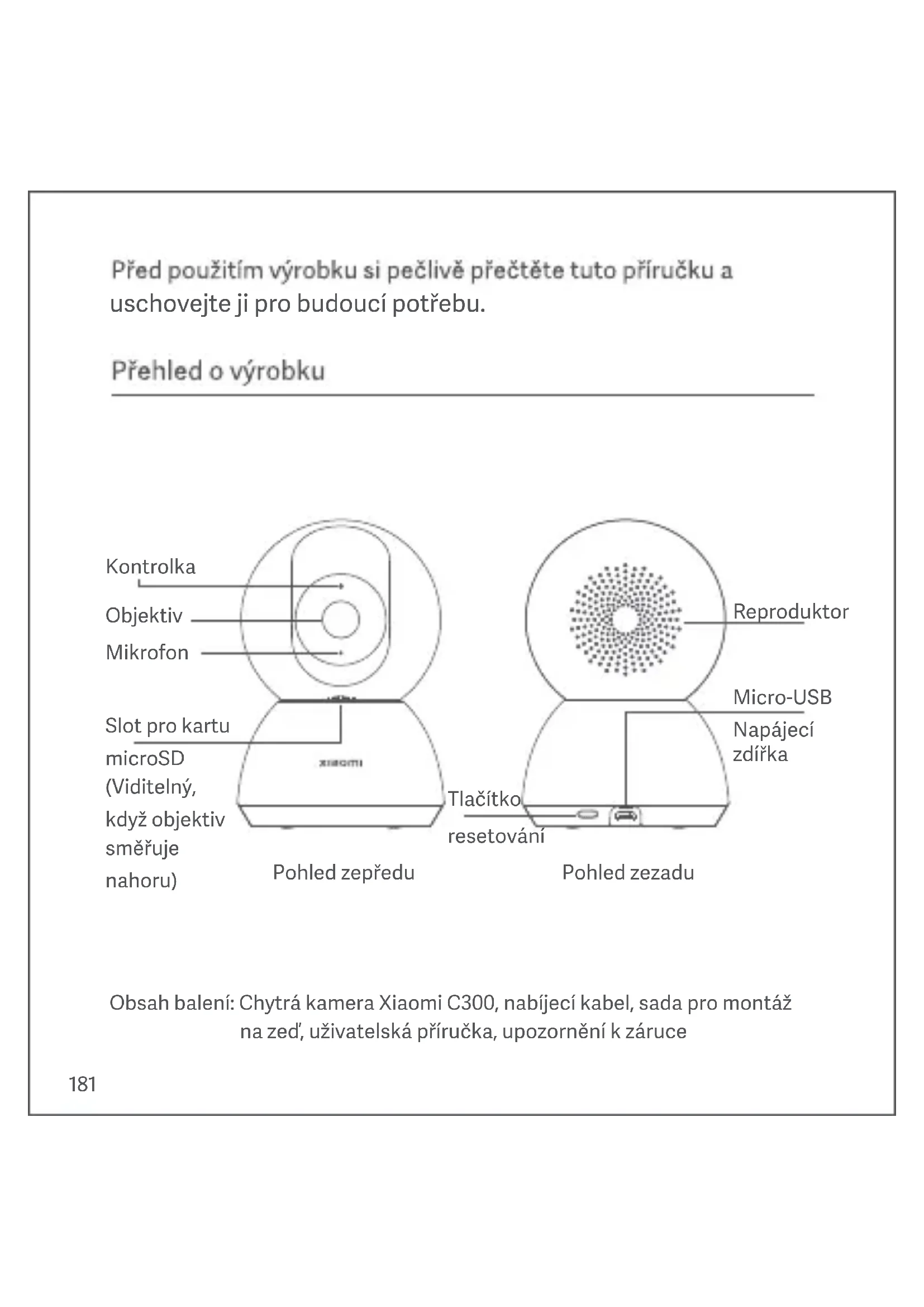 NÁVOD K OBSLUZE Smart Camera C300 Xiaomi