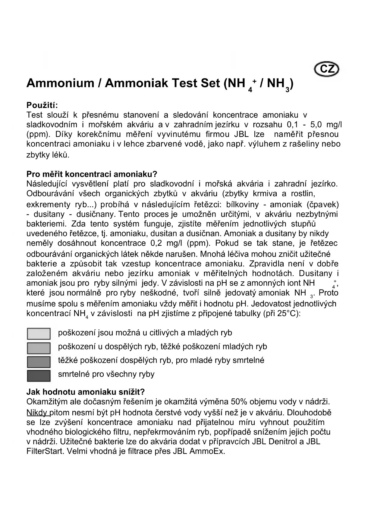 NH4 Test - Vodní filtr JBL - Bezplatný návod k obsluze