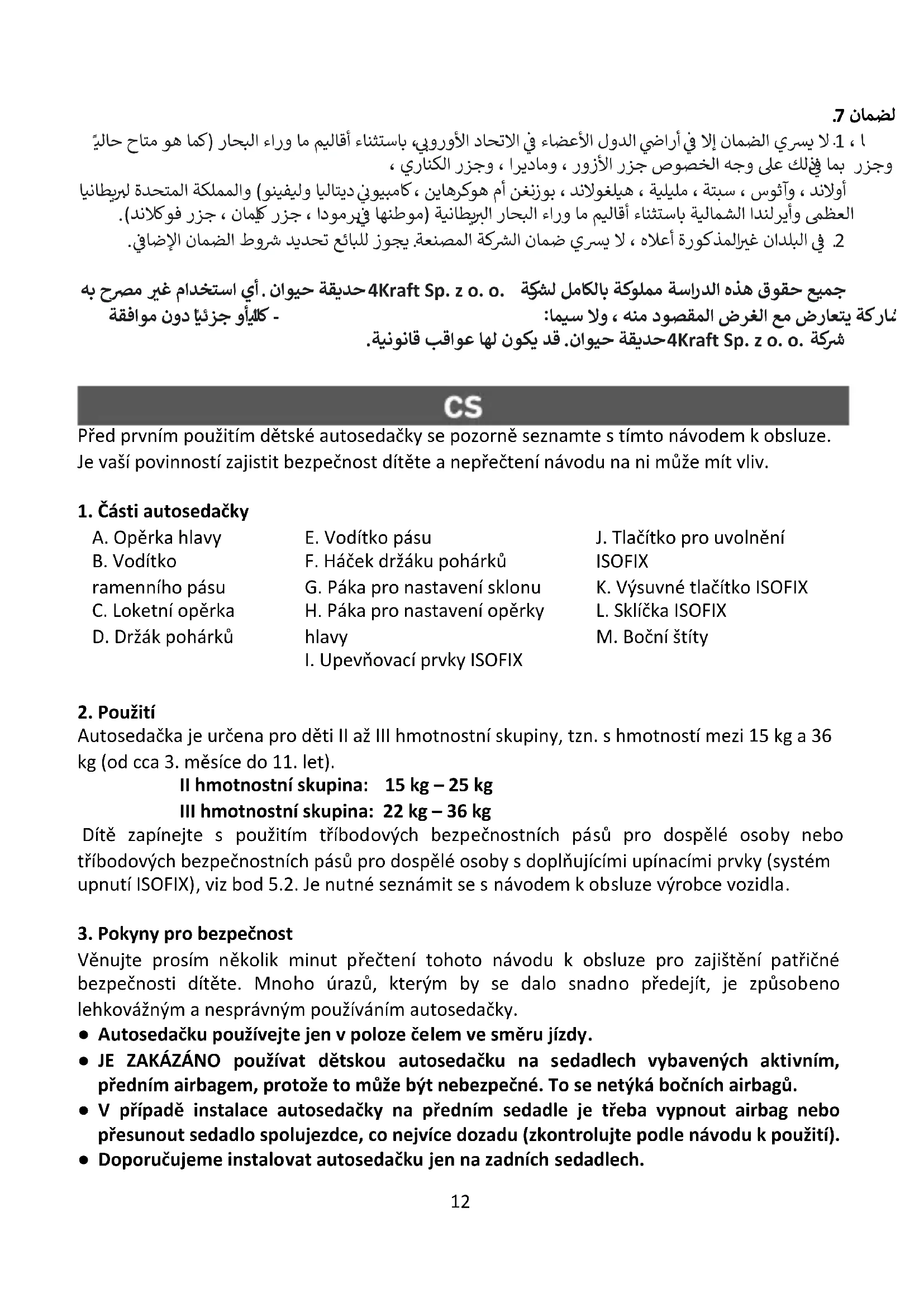 Veškerá práva k tomuto vypracování patří v celku 4Kraft Sp. z o.o. Jejich jakékoli neoprávněné použití, které je v rozporu s jejich určením, zejména: používání, kopírování, množení, sdílení - zejména nebo v části bez souhlasu 4Kraft Sp. z o.o. může mít za následek následky právní povahy. Bitte machen Sie sich mit der Bedienungsanleitung des Autokindersitzes vor Erstgebrauch sorgfältig vertraut. Sie haben für die Sicherheit Ihres Kindes zu sorgen. Wenn Sie diese Bedienungsanleitung nicht durchlesen, kann das die Sicherheit Ihres Kindes negativ beeinflussen.